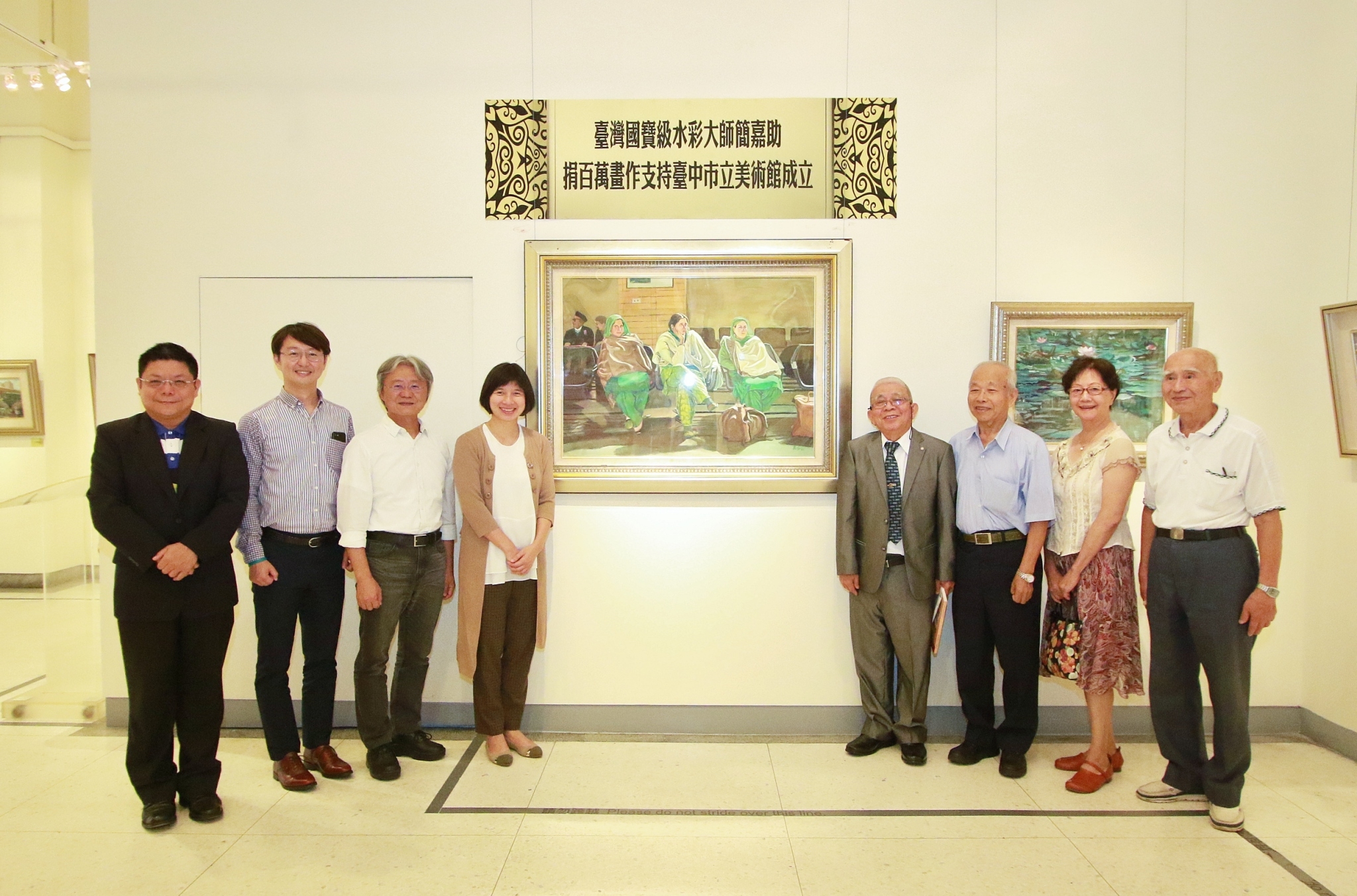 台中市立美術館目前已購藏包括簡嘉助教授1986年作品〈紅衣(美三的幻想)〉等多件經典畫作,今又獲簡嘉助教授慷慨捐贈價值百萬創作、於1992年的全開水彩畫〈等待〉,支持市立美術館成立,文化局對此表示感謝。(8/2*17)*文化局