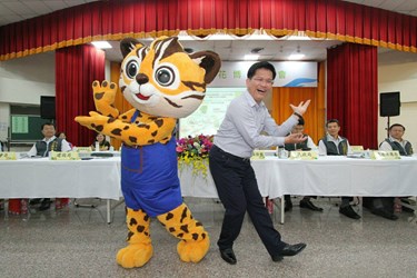 石虎家族弟弟「來虎」玩偶與林市長手牽手走入會場,比出可愛逗趣的「花花三連拍」姿勢,與會民眾紛紛拿起手機搶拍,氣氛歡樂;市議員蘇慶雲服務處代表、各區里長、多位市政顧問均到場關心。