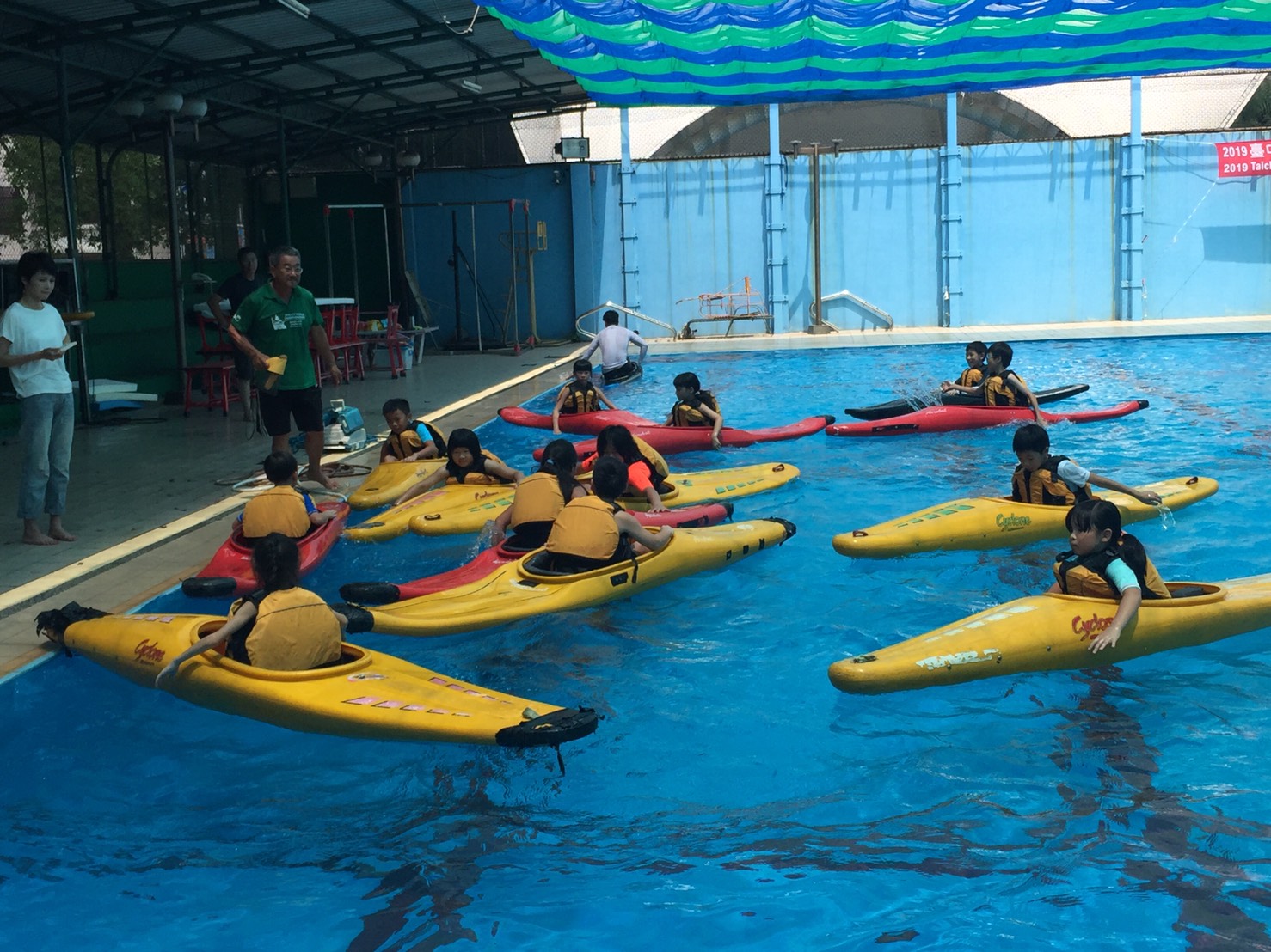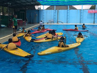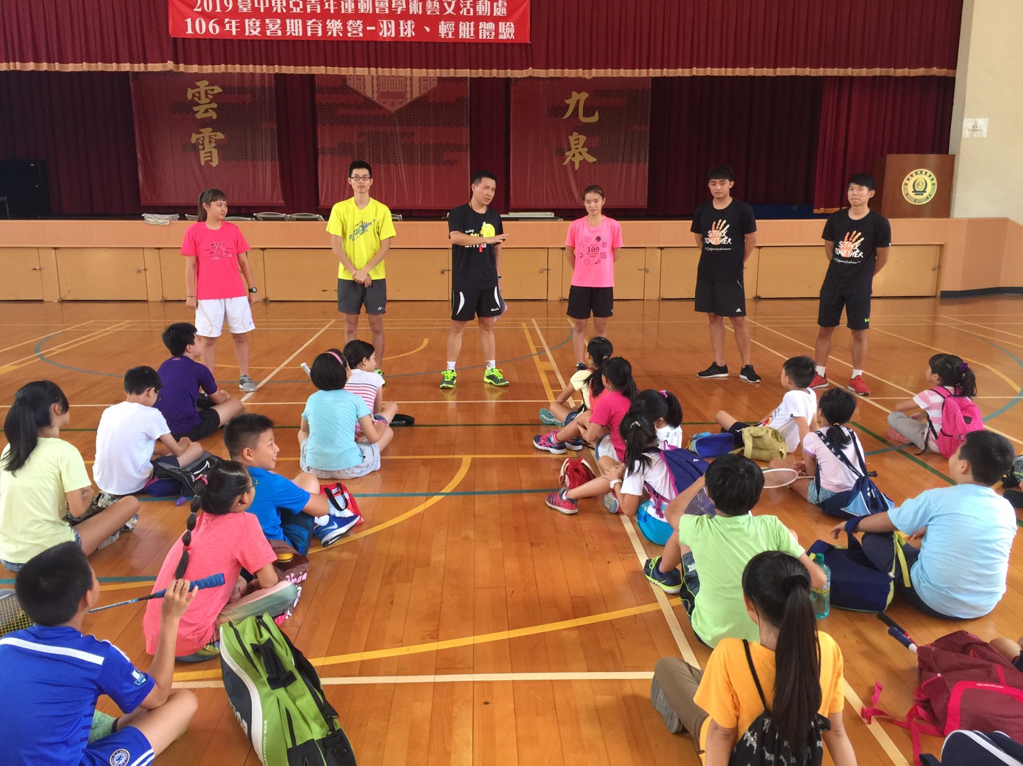 市府運動局表示,羽球、輕艇育樂營今(7)日起在國立台中教育大學熱鬧登場,為期2天的訓練課程,每日皆由台中教育大學體育學系主任許太彥擔任講師,不僅介紹奧林匹克精神及東亞青奧賽主軸「Young & Green」,並分別由老師傳授羽球及輕艇的運動規則與技巧,再讓學員們進行實作及體驗,現場氣氛熱鬧又充滿活力。