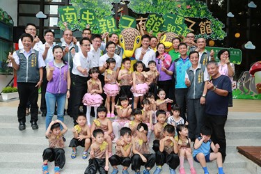 「今年父親節最好的禮物,就是南屯親子館正式開幕!」林市長表示,他以市長也是孩子爸爸的身分,獻給台中市爸爸父親節禮物,就是南屯親子館的正式開幕,對於父親來說,養兒育女是一種喜悅也是一種責任,如果政府能多提供托育的補助與各種協助,可解決少子化危機。
