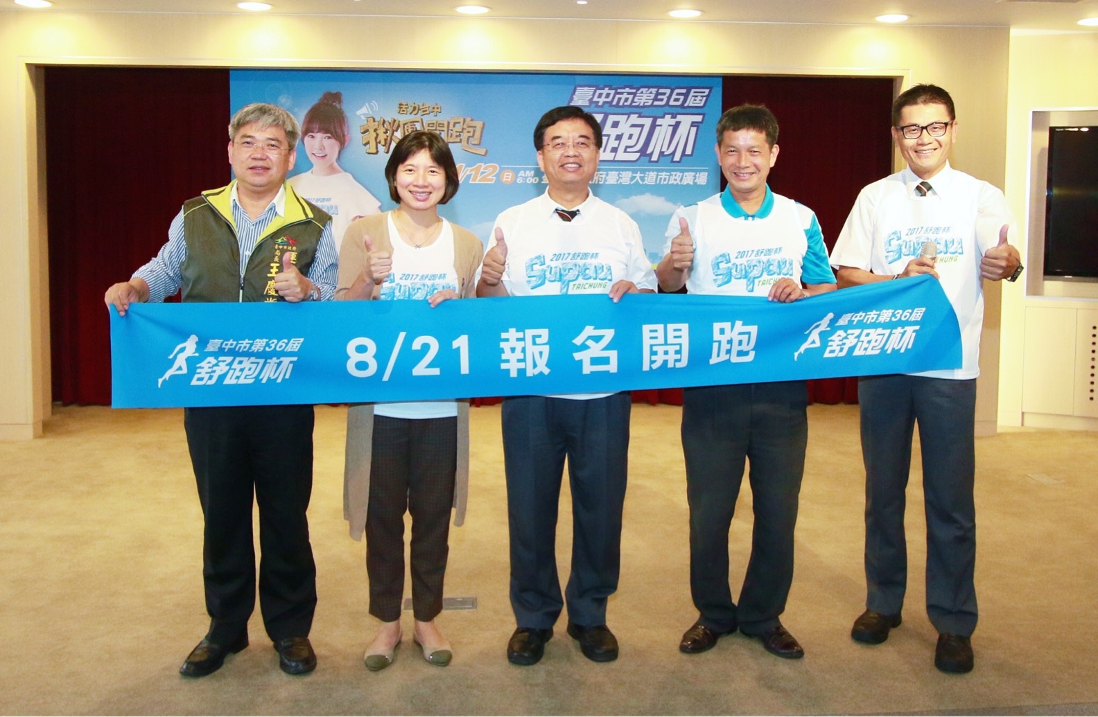 「台中市第36屆舒跑杯路跑競賽」將於11月12日台灣大道市政大樓廣場前開跑,分成9公里競賽組、3公里休閒組,並邀請藝人吳心緹到場加油打氣,及互動玩遊戲,活動自8月21日上午10時起開放網路報名,限額3萬名。副市長林依瑩今(11)日出席記者會鼓勵大家「揪團」參加,一邊路跑,一邊體驗台中的城市美好風光。