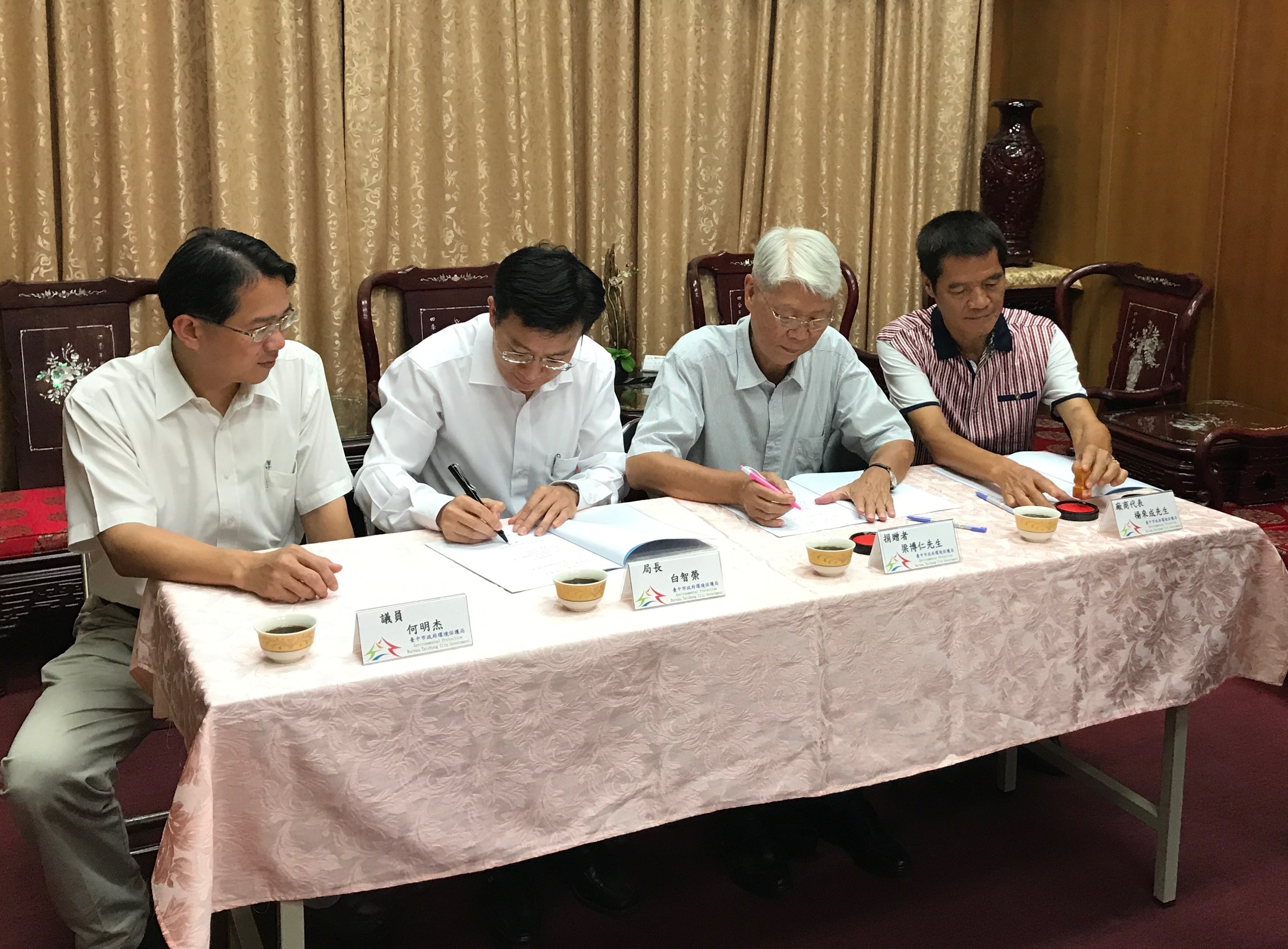 台中東海扶輪社友梁博仁捐贈簽約儀式今(16)日在環保局二樓貴賓廳舉行,由環保局白局長及議員何明杰共同見證,並與廠商代表完成簽約手續。