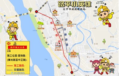 另外,建設局也將加速辦理東勢區豐勢路路平,改善路段約2公里,起訖點由東坑路至中正路,預計在9月初先辦理路基改善及孔蓋下地作業、9月底進行路面刨封,若天候許可,可望在10月初完工。