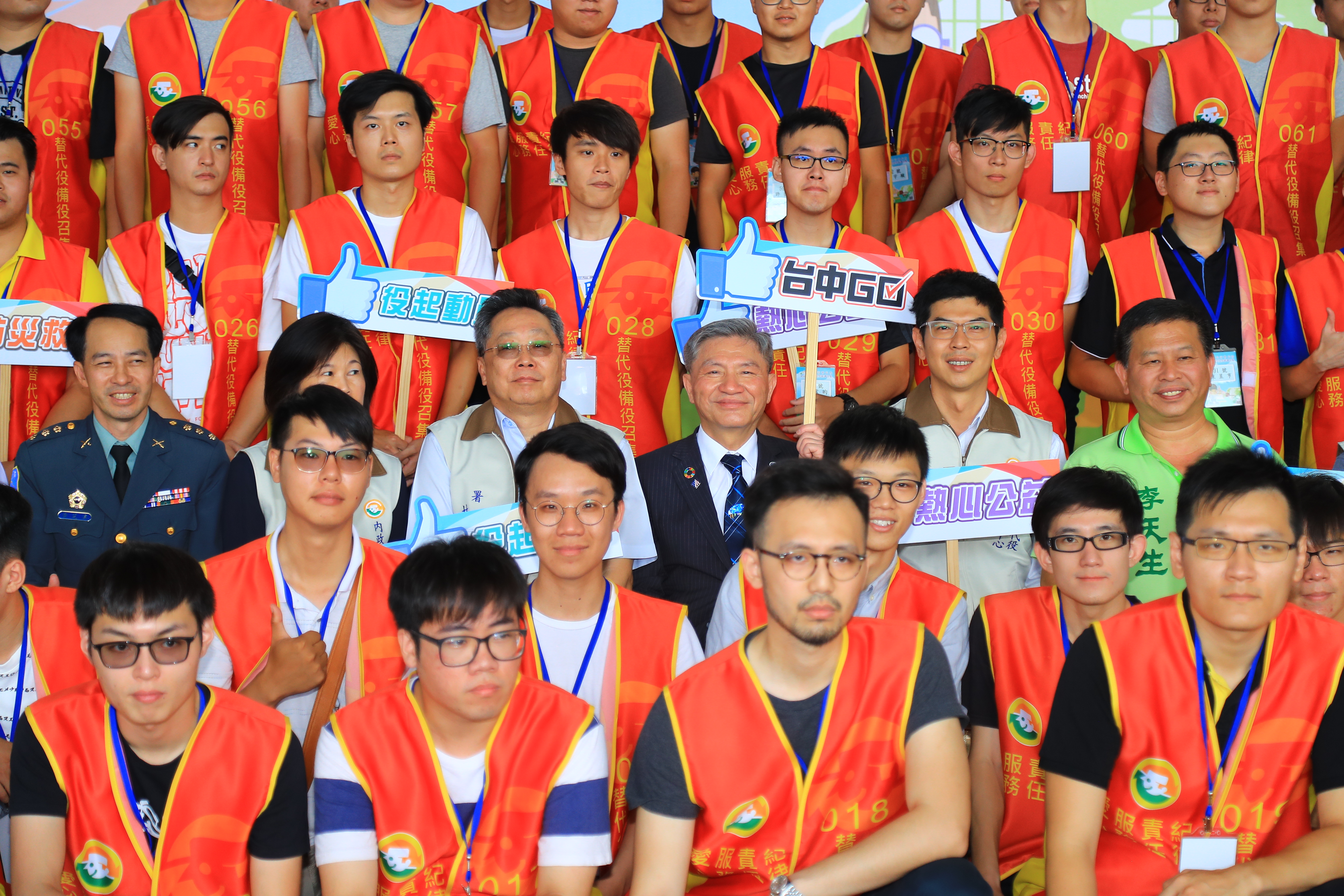 民政局指出,台中市列管的備役役男人數有3萬8,000餘人,今日除揭牌外,也進行替代役備役役男演訓,此次共召集90名公共行政役替代役備役役男,課程以災防為主,講授避難逃生要領並輔以CPR、AED、滅火器實際操作;同時也調訓市府各局處約300多名現役役男參加觀摩進行在職訓練,提升役男災害防救應變,強化未來防救災工作備援力量。(8/18*6)*民政局