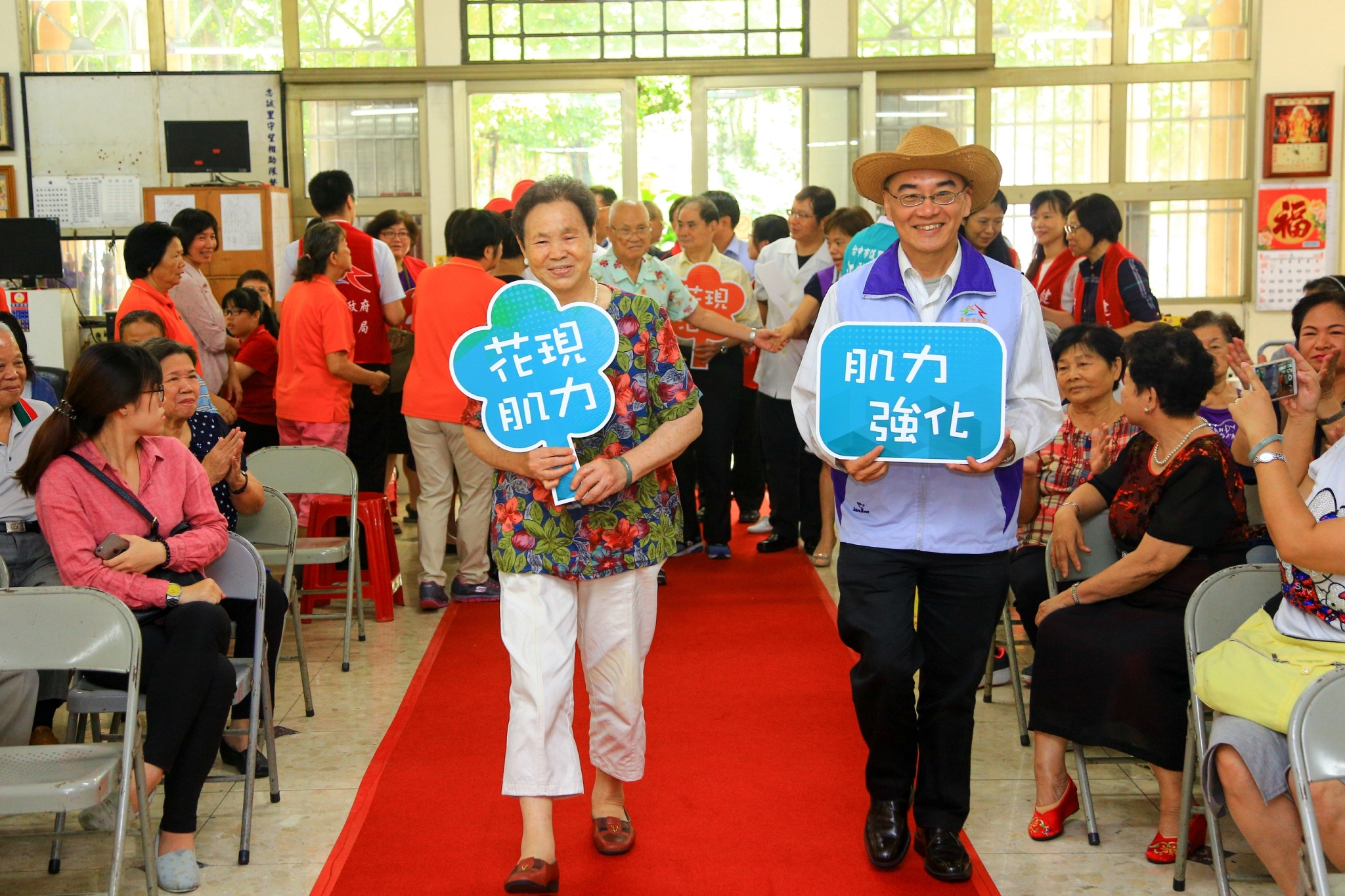 副市長林依瑩今(18)日出席預防及延緩失能照護計畫「銀得健康站」啟動記者會,西區忠誠里「銀得健康站─健促體態班」的爺爺奶奶敲鑼打鼓,帶來活潑生動的《桂河大橋進行曲》演奏,接著還進行時尚走秀表演,氣氛歡樂。市議員江肇國、朱元宏、前市長張温鷹、西區區長陳麗珠,以及立委黃國書、市議員張宏年服務處代表等人也到場共襄盛舉。