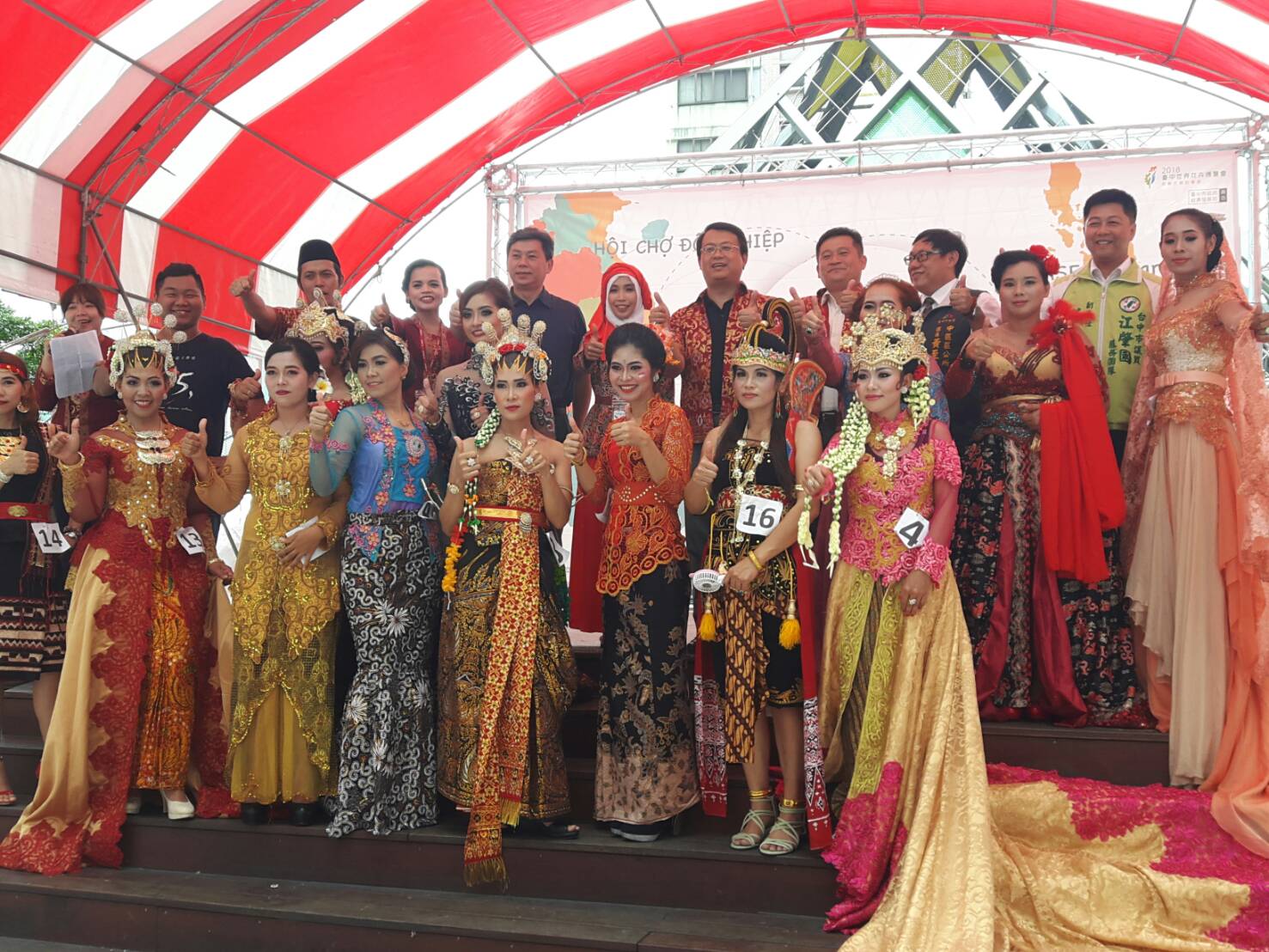 今日的東協市集與移工朋友們合作,安排印尼舞蹈表演、傳統服飾走秀、烹飪比賽、印尼移工樂團演出等活動,現場充滿異國文化氣氛,場面熱鬧。
