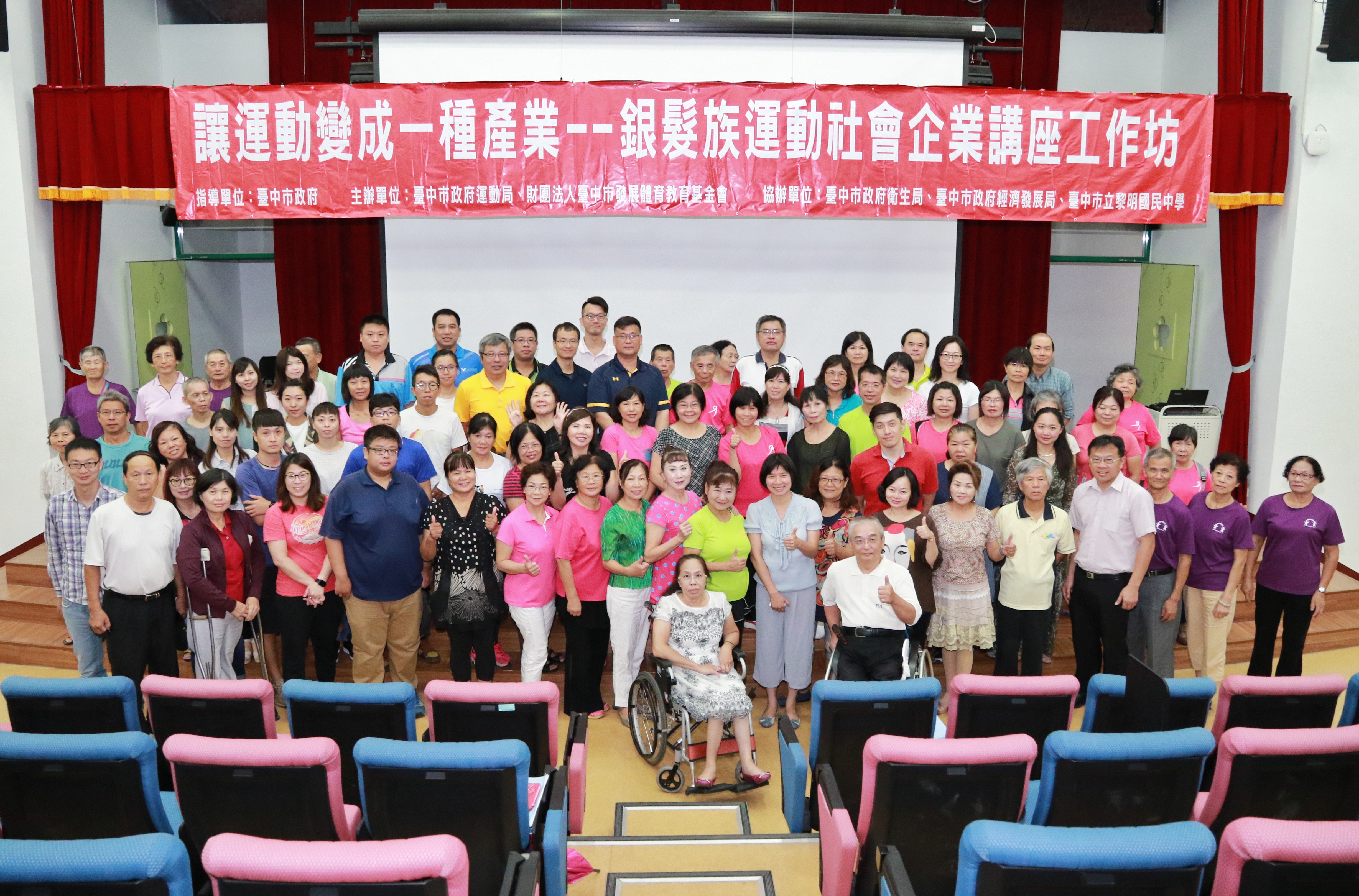 今日活動邀請台中市各級運動教練、各單項委員會、區體育會、物理治療師公會、大專校院相關領域師生參與,由芮宜健康學堂、菲特邦健康管理工作室及揚生慈善基金會等社會企業及基金會,分享投入運動指導、銀髮族運動規劃的成功經驗,希望未來逐步建立運動產業社會企業工作圈,發掘更多運動工作者投入銀髮族運動指導的行列。