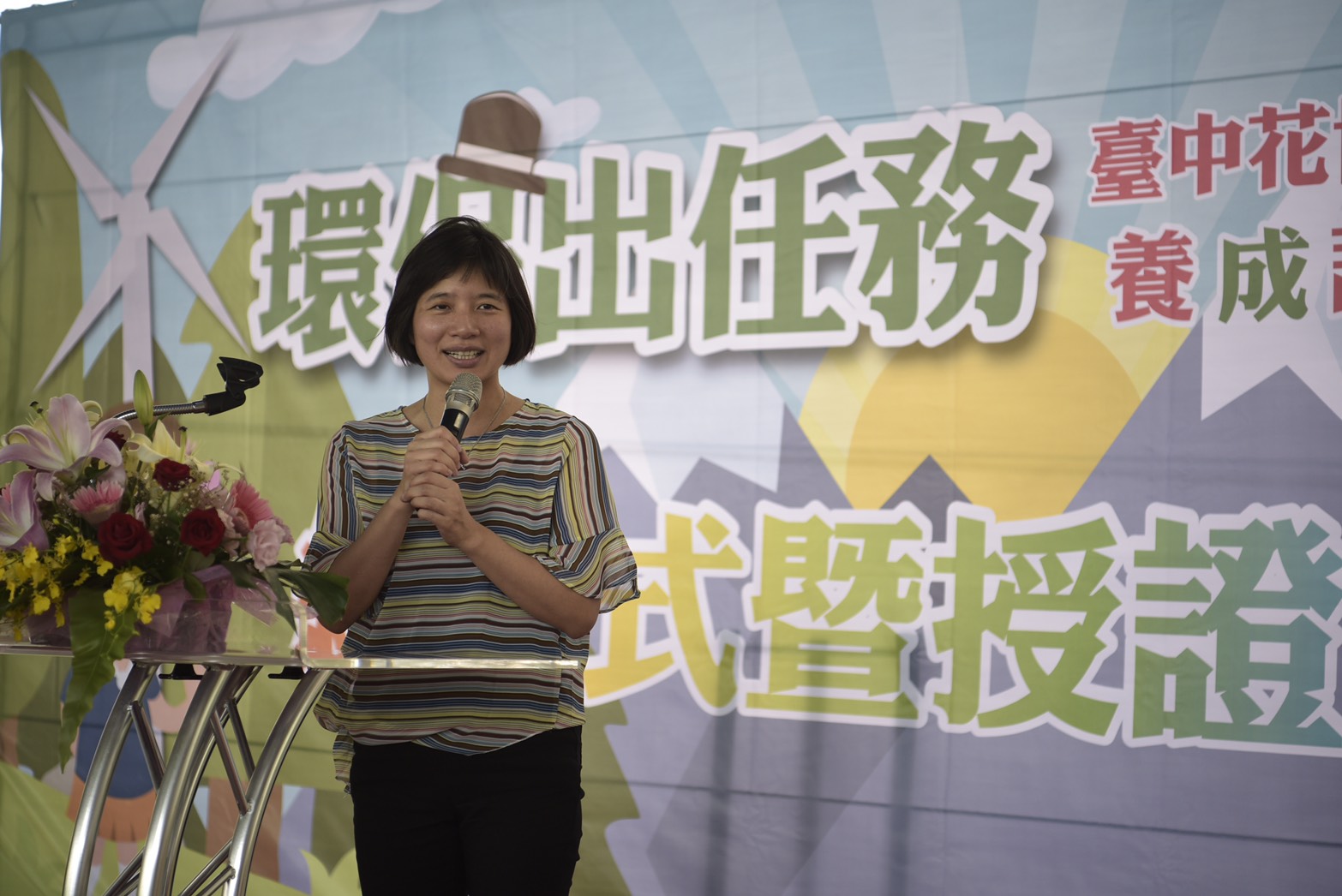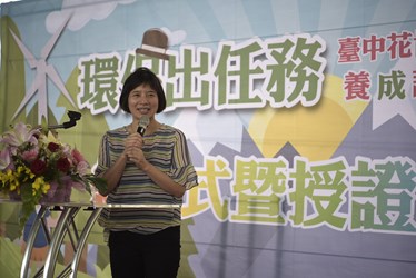 林副市長表示,看著小小環保大使的臉龐,就好像看到台中市環境教育的茁壯與成長,期盼這些花博小小環保大使能夠發揮自身力量影響周邊的親友和同學,傳達正確的友善環境觀念,一起讓台中成為最居住城市。