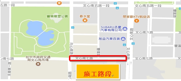 地政局表示,施工期間自9月4日至18日,已要求施工廠商務必作好相關告示,預先通知當地里長及周遭居民,也提醒用路人預為因應或改道,建議可改走文心南三路或文心南五路,並減速慢行、注意安全。(9/2*13)*地政局
