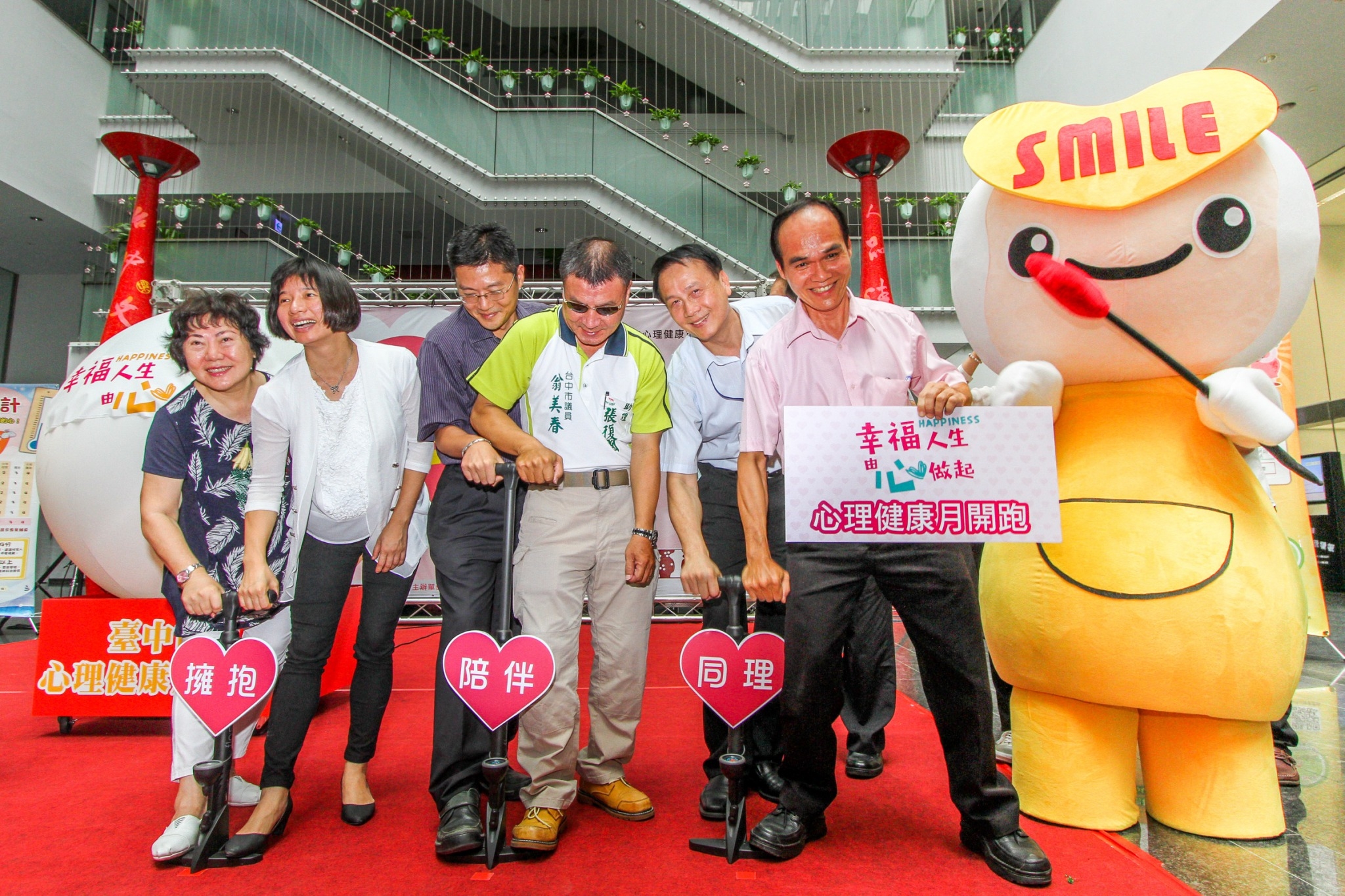 台中市政府衛生局今(7)日舉辦「幸福人生、由心做起」心理健康月記者會,由市民票選SMILE天使,與副市長林依瑩、衛生局副局長張瑞麟、市議員劉士州、台中市臨床心理師公會理事長邱惟真、台中市諮商心理師公會副理事長林俊德、中山醫學大學心理系主任謝珮玲、宏恩醫院龍安分院院長沈君傑等人共同宣傳心理健康的重要性,藉由SMILE意象提倡每位市民,從實際生活中關心自己與他人身心健康,讓台中市成為微笑城市;市議員陳政顯、陳成添、翁美春等服務處代表也到場致意。