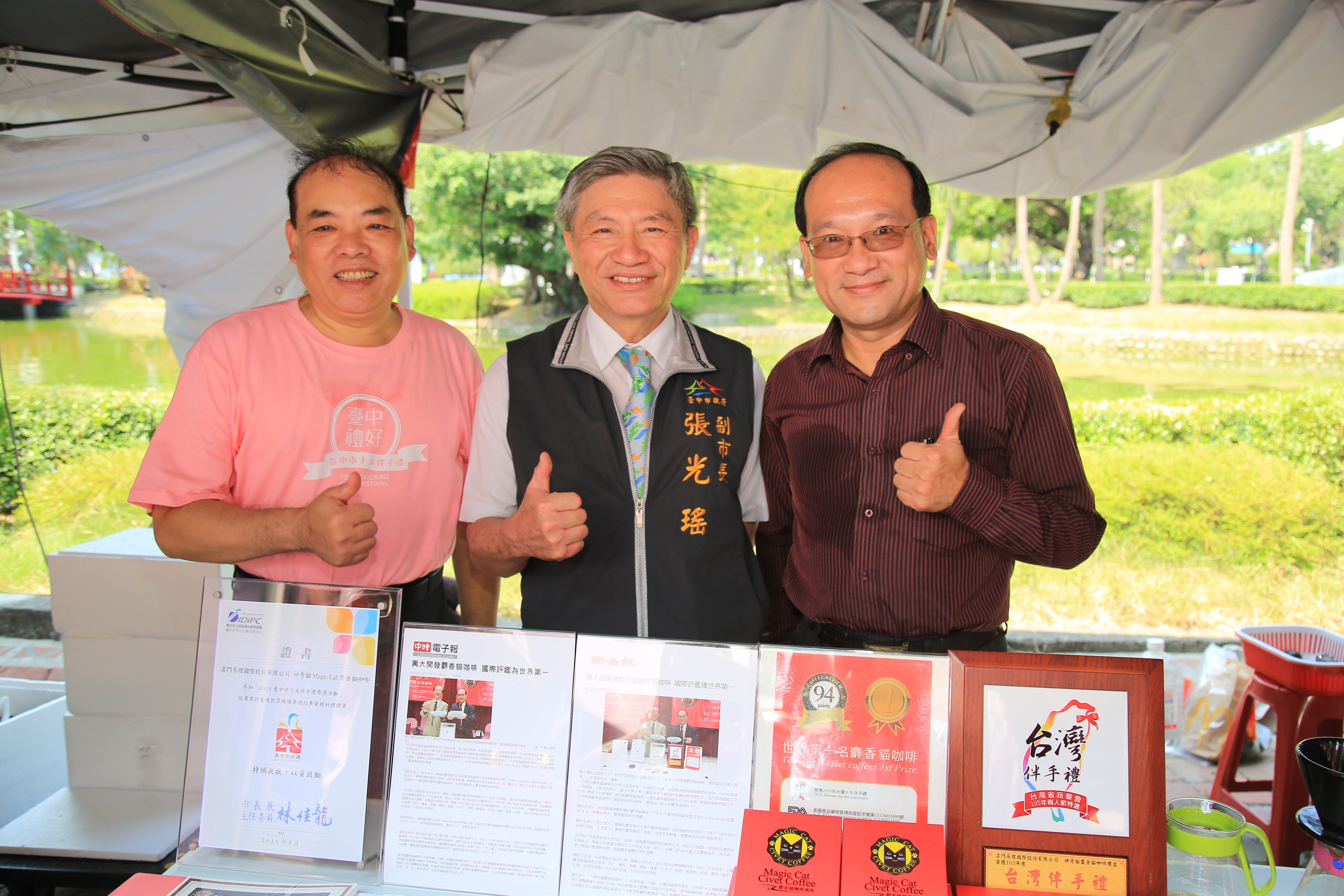 今日票選活動以立達太鼓的表演揭開序幕,包括副市長張光瑤、經發局主秘蔡珍珍、台中市工商發展投資策進會總幹事蔡世寅、顧問黃望修及台中市糕餅公會理事長周子良等人均到台中公園為大家加油打氣,並到各攤位前與攤商交流互動,氣氛相當熱鬧。
