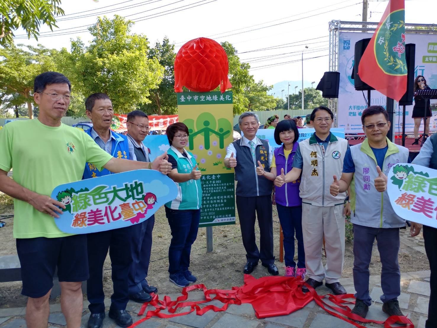 農業局輔導太平區公所行銷在地農產品,今日舉辦花現市集活動,並舉行綠色大地福星段綠美化空地揭牌啟用典禮,張副市長在農業局長王俊雄的陪同下出席,包括立委何欣純辦公室主任廖冏勳、市議員張玉嬿、何明杰、太平區長陳小菲等人均出席,市議員賴義煌、李麗華也派代表共襄盛舉,一同見證綠美化空地啟用儀式。