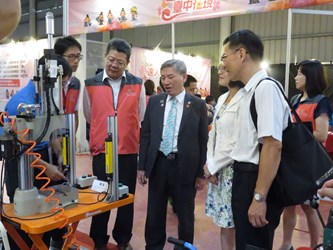 張副市長今日於就業嘉年華現場,不僅親自上場模擬影音履歷製作及體驗VR虛擬實境,也摸出首獎IPAD-Mini與得獎民眾合影,現場人潮踴躍,並有夢想者聯盟表演炒熱氣氛;台灣美光、大立光電、友達光電、台積電等57家智慧機械廠商均到場設攤招募人才,吸引數千名市民參加活動及投遞履歷。