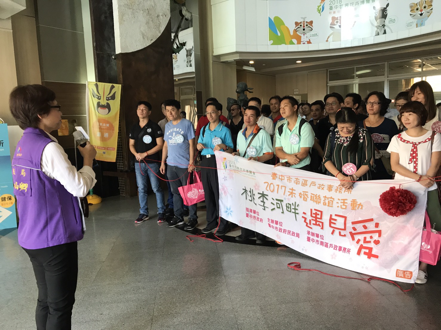 台中市政府民政局今(16)日舉辦最終場,也是熟齡場的未婚民眾聯誼活動「桃李河畔遇見愛」,限定由40歲至55歲的熟齡男女參加,民政局特別送出向月老求得經加持的姻緣線,贈送參與的未婚男女,希望有好彩頭讓雙方開啟彼此甜蜜的愛情故事。