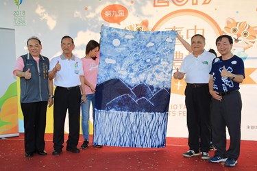 工策會表示,今年的大型義賣品是由「水源地文教基金會-太平藍」提供高2公尺,寬1公尺,具台中太平在地特色的「大型蝙蝠藍染掛軸」,及「嘉味軒」製作重達「100斤的花博金餅」。現場觀眾出價踴躍,最終分別各以6萬共12萬賣出,這兩天義賣所得共23萬0,050元及嘉味軒提供的100斤花博金餅,將全部捐出。