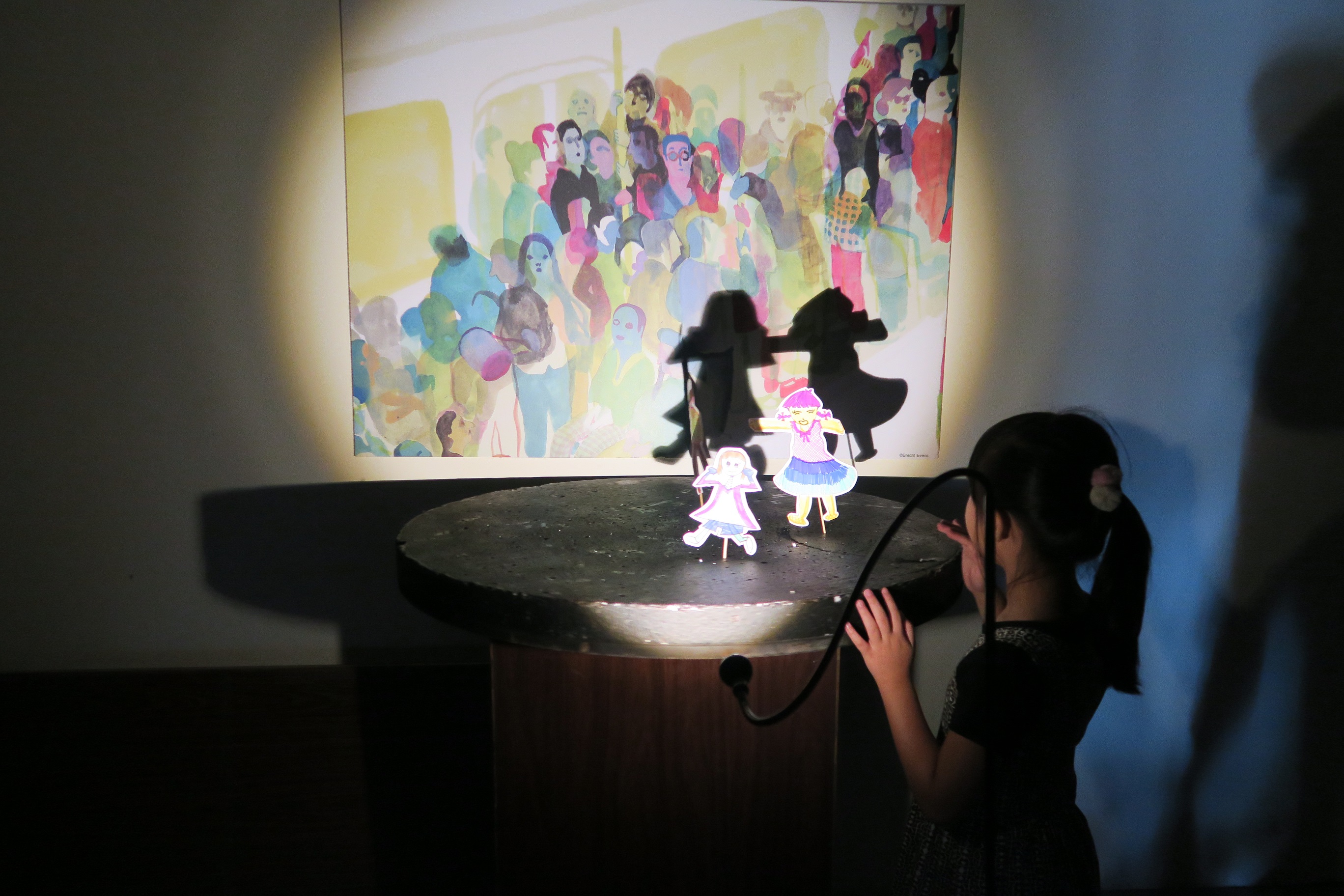 而「剪影裝置手作」課程也吸引許多民眾參與,由老師帶領學員用身體表現各式動作,由學員互相以同伴的表現動作,親手繪製人型立牌角色,並腦力激盪創作故事,最後透過投影在艾文仕畫作上,如同走進艾文仕的漫畫世界之中。