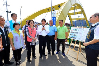 市長林佳龍在研考會主委柳嘉峰、觀光旅遊局主秘莊右孟的陪同下視察霧峰乾溪自行車道二期工程,包括市議員李天生、張滄沂、張芬郁、林碧秀,以及立法院副院長蔡其昌、立委何欣純服務處代表等人均到場關心。