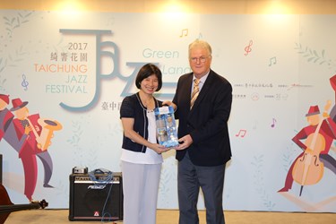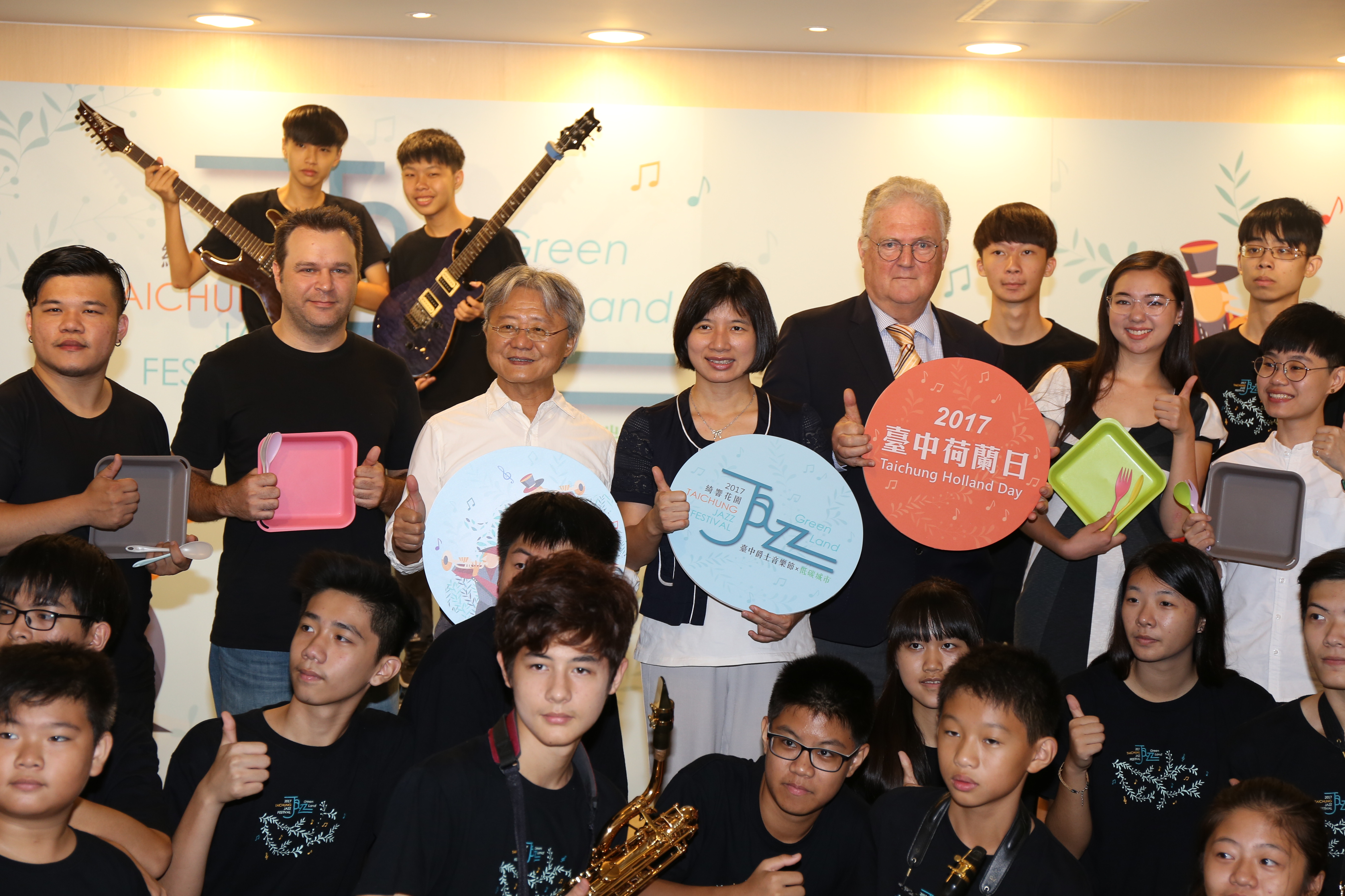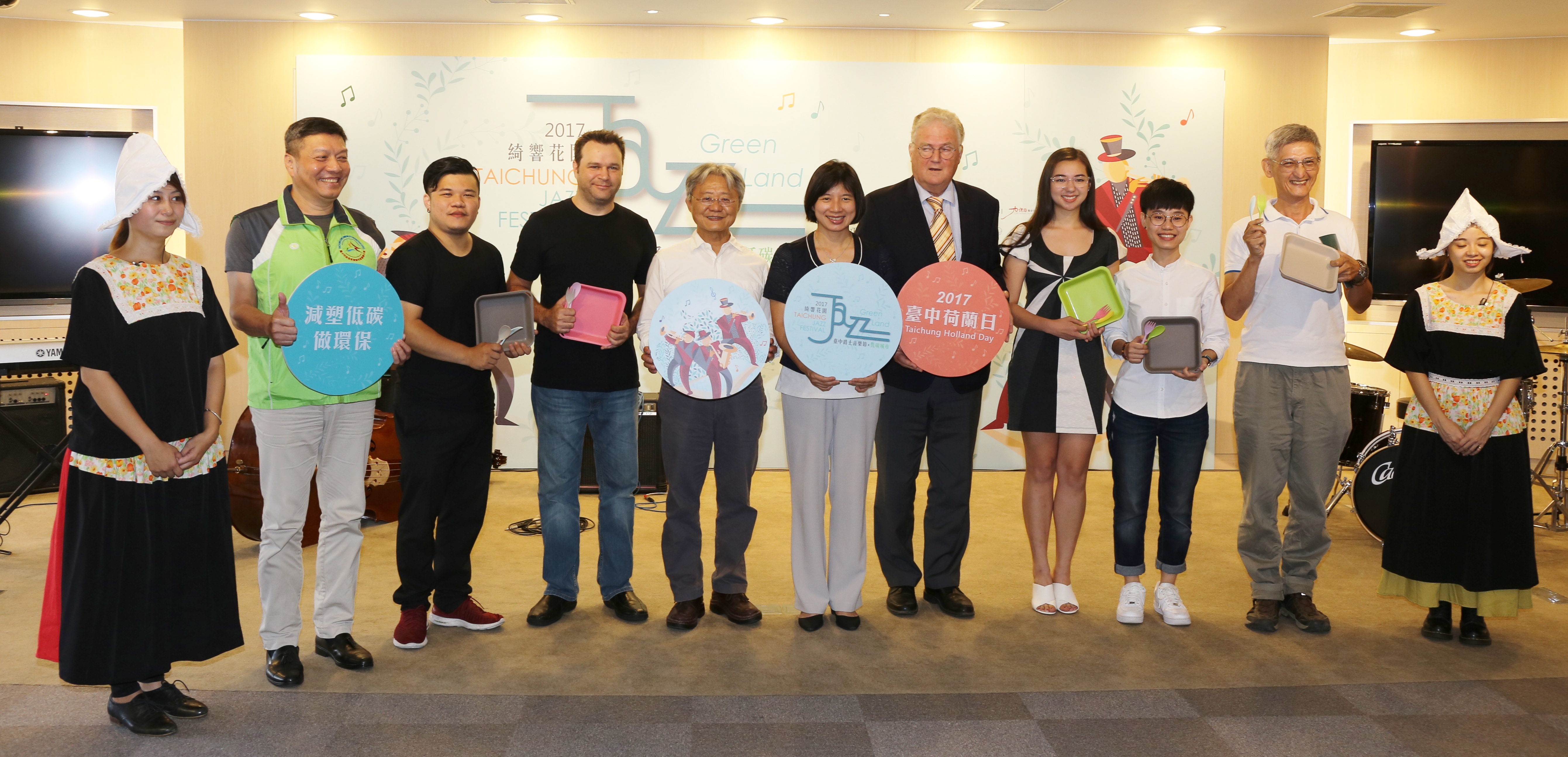 台中市政府文化局今日為「台中爵士音樂節」舉辦記者會宣傳,記者會邀請台中青少年爵士大樂團現場演奏,荷蘭木鞋、玻璃杯、膠桶也化身為樂器,結合薩克斯風、爵士鼓,為記者會熱鬧開場,包括副市長林依瑩、荷蘭貿易暨投資辦事處副代表范安治、文化局長王志誠、低碳城市推動辦公室執行長王岳彬也都出席。