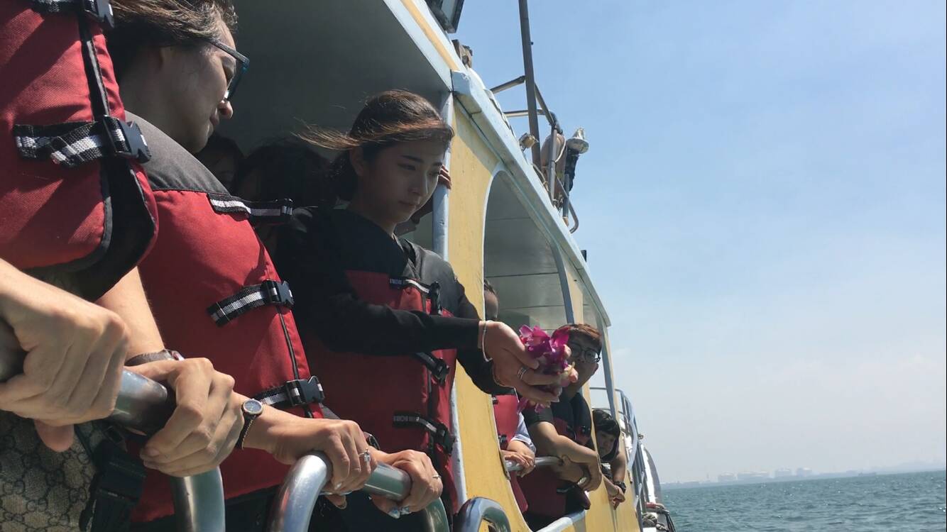 參加海葬的家屬表示,很認同環保葬法的理念,部分親人生前就希望能將骨灰回歸大海、重返自然,剛好適逢台中市辦理聯合海葬,感覺冥冥之中自有安排,得以讓先人如願、後代安心。(9/27*18)*民政局