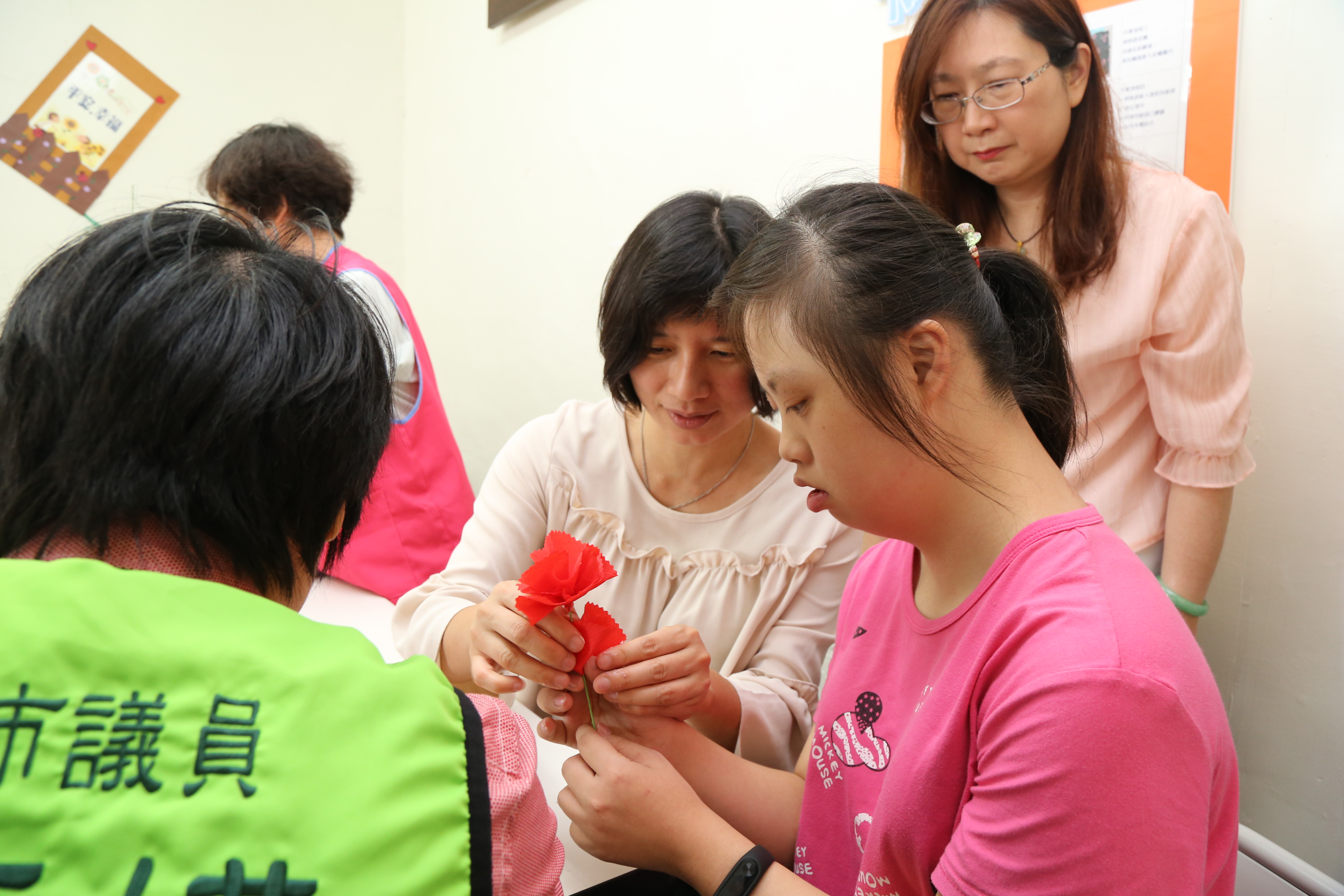 由台中市愛無礙協會打造的佰渡工坊,今(15)日舉辦開幕茶會,林副市長在社會局副局長陳坤皇的陪同下出席揭牌儀式,包括太平區長陳小菲、市議員張玉嬿、賴義鍠、台中市愛無礙協會理事長釋道明,以及立委何欣純、市議員李麗華服務處代表都到場共襄盛舉;林副市長與身障者共同製作康乃馨,氣氛熱鬧。