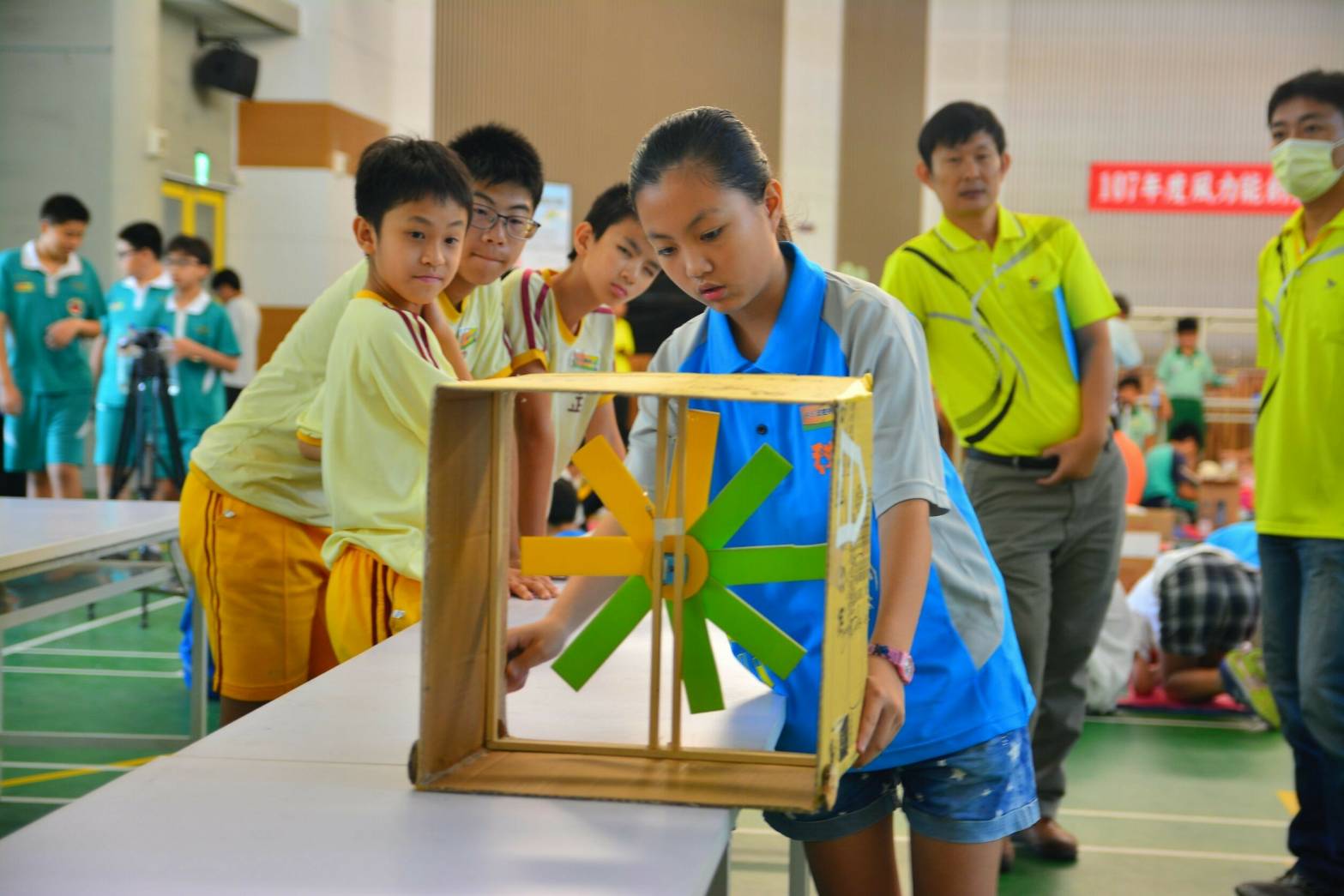 台中市政府教育局舉辦能源相關競賽邁入第7年,今年以風力能為主題,風力能創意玩具競賽今(18)日在太平區新光國小登場,共43所國中小參賽,透過寓教於樂的方式推廣節能減碳概念。