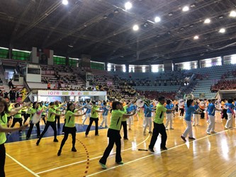 全國舞藝展演今(19)日在國立體育運動大學體育館登場,6000多位舞林高手齊聚尬舞,展現自信、美麗與熱情,副秘書長郭坤明出席為選手加油打氣,感謝大家帶來精彩的舞蹈演出,帶動全民運動的風氣。