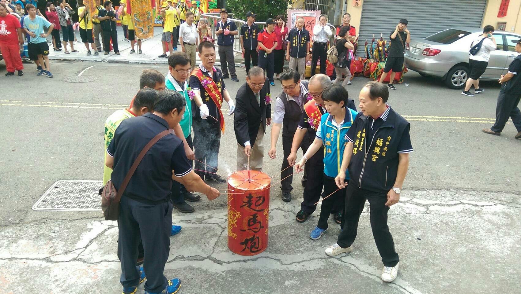 副市長林陵三今(20)日一早出席南區「福興宮」南巡謁祖進香活動起駕儀式,代表鳴放起馬炮,祈求市民平安健康、台中建設發展順利。