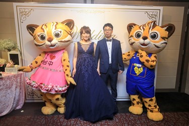 5月20日諧音「我愛你」,不少新人都會選擇這天來舉辦婚禮,從就讀大學開始在台中生活已有7年的許小姐,也選在昨(20)日與日籍男友神原先生互許終身,兩人特別邀請台中花博吉祥物樂虎和來虎參加婚宴,引起現場親友及賓客一陣騷動,紛紛搶著要合照,而來虎也特別帶來花博票券,送給新人當做新婚禮物,許小姐說,將會邀請丈夫的日籍家人,一起到台中參加花博盛會。