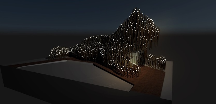 經發局表示,為讓遊客感受夜間視覺體驗,將於回收紙管內設置750顆環保LED太陽能燈作為燈光照明,突顯石虎夜間曲面與姿態之美,走進森林石虎夜間生活。「森隆活虎館」採用太陽能燈,以自給自足提供夜間光源電力,減少展覽能源消耗,讓花博展區成為低碳節能示範場域。