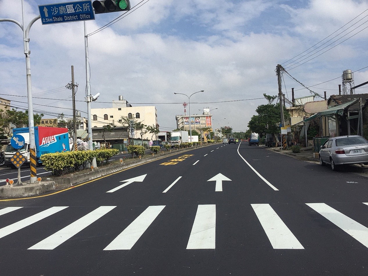 沙田路路平已於106年11月20日完工,黃局長特別選在完工後半年前往視察全路段道路品質,發現經過路基改善後,沙田路已無過去路面車道下陷的問題,顯示路基改良工法對於提升道路品質確有成效,也讓行車更加安全舒適。