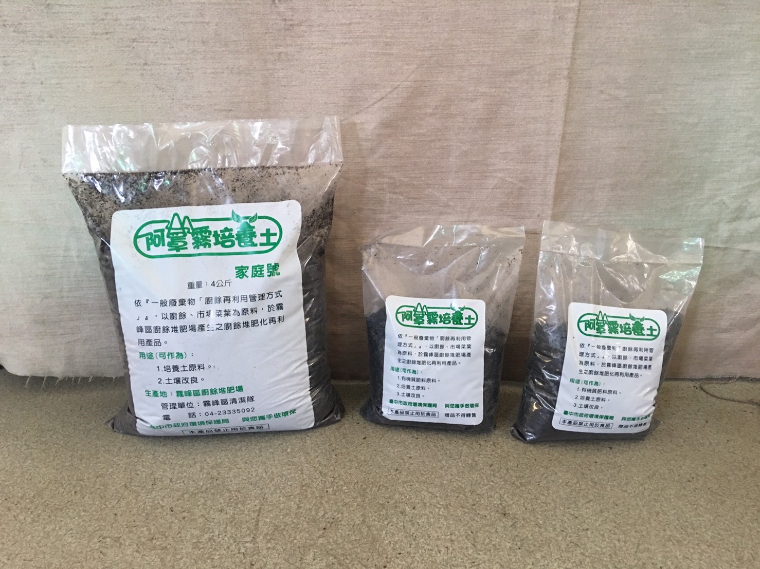 環保局指出,阿罩霧培養土4公斤裝每包30元,民眾可至北屯區寶之林二手物品展售中心、清淨園區家電診所及台中州廳服務台選購。活動訊息可至市府環保局資源回收網查詢 (http://recycle.epb.taichung.gov.tw/ ),洽詢專線04-2227-6011分機66413(陳先生或魏小姐)。