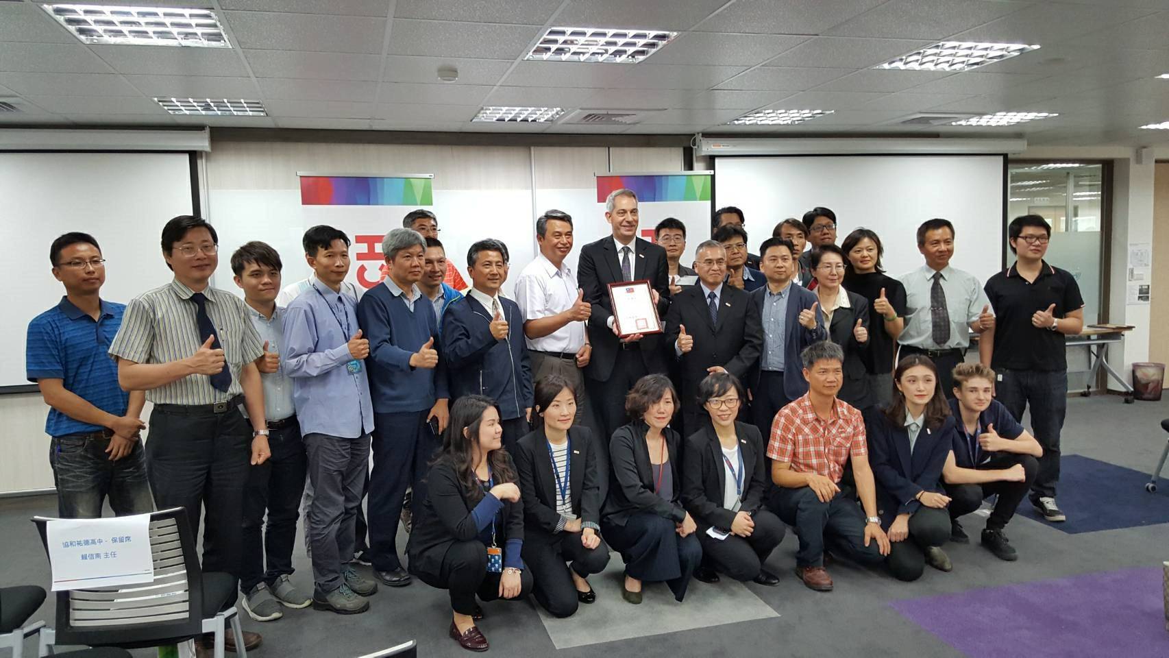 教育局彭局長並邀請速聯股份有限公司廠長林孟輝及副理陳世杰,擔任技術及職業教育中心業界諮詢專家,希望透過企業分享技職理念,提供學生選讀技職教育參考,也傳承職前及在職訓練經驗,做為台中市發展產學人才培育模式的基礎。