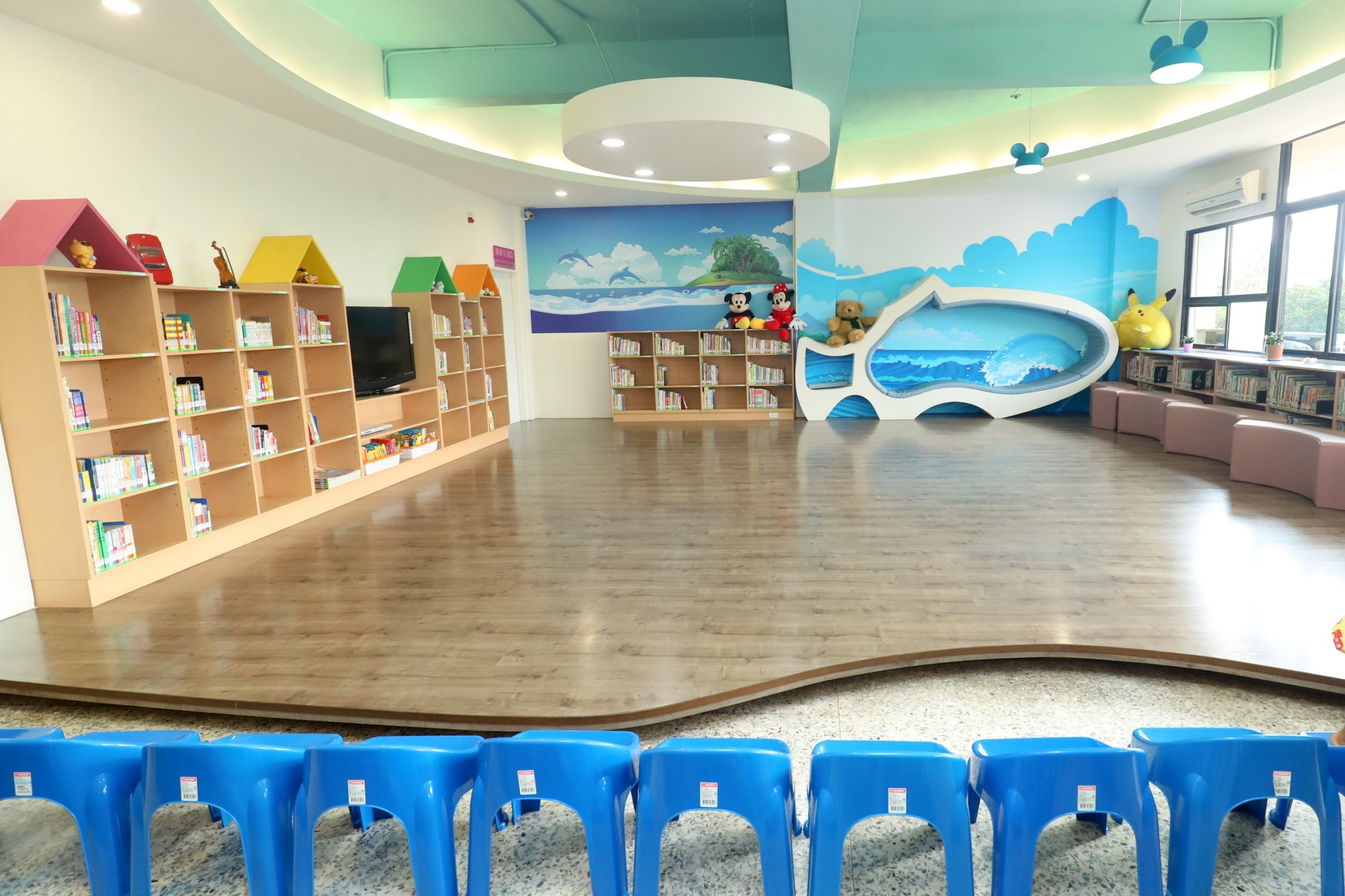 空間改造後的梧棲分館,1樓設有舒適閱報桌椅的報紙期刊區、樂齡區及新書展示區,搭配寬廣便捷的服務櫃檯,符合現代化便利的需求;2樓則有海洋明亮遼闊魚型座椅、魚型天花板及造型書櫃為特色的嬰幼兒區、充滿孩童想像彩虹書櫃組成的兒童區、兒童電腦益智區及婦幼新知區,同時也增設哺乳室、親子廁所等,更加適合親子共讀。