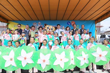 今日的花藝推廣活動在台中市立圖書館溪西分館旁舉行,1,000位民眾齊聚插花交流花藝,場面盛大,包括林市長、市議員邱素貞、陳淑華、花博吉祥物石虎家族姐姐「樂虎」均到場體驗插花藝術,林市長還將自己做的花藝盆栽送給樂虎,現場熱鬧滾滾。