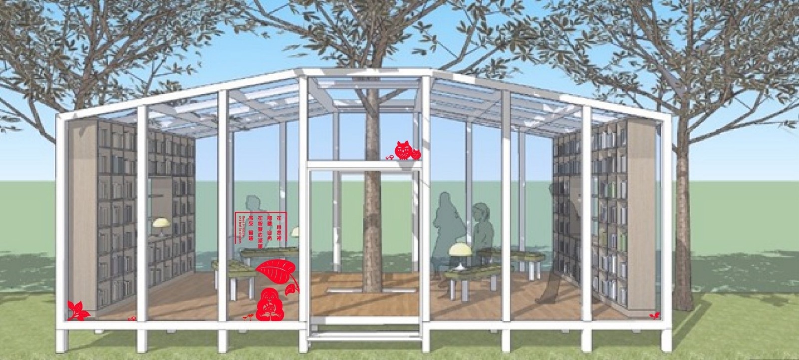市府建設局指出,「森林圖書館」面積32平方公尺,約380公分高,館內規劃兩邊書架,陳列的書籍以自然或環境議題相關為主,讓遊客能在穿透性佳的空間中閱讀、休憩,並與花草樹木融合成與大自然共存的場景。