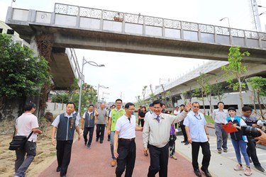 林市長在建設局長黃玉霖的陪同下視察豐原區東北街道路拓寬及心鎖橋拆除工程,並聽取建設局簡報工程規劃及進度,包括市議員陳清龍、陳本添、張瀞分及鐵工局代表均到場關心。