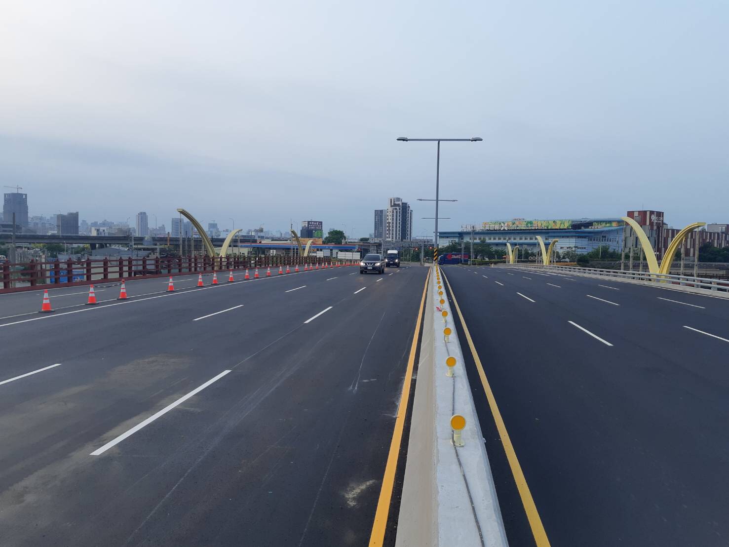 台中市南屯區知高橋改建工程104年動工,橋面設施完成度已達9成。繼工業區往市區方向(東向)4車道已於5月中旬提早通車,市區往工業區(西向)3車道昨(29)晚完成標線劃設後,也在午夜12時開放通車。