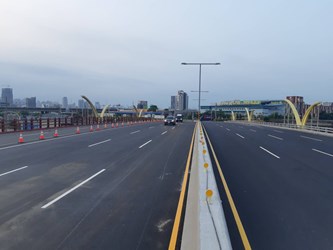 建設局表示,改建完工的知高橋,長220公尺、寬35公尺,雙向車道增加為8個車道、外加1人行道,大幅減少橋梁落墩數並抬高橋面,兼顧安全品質及規格。同時也提升疏洪排水功能及交通順暢,讓筏子溪周遭居民安全更有保障。