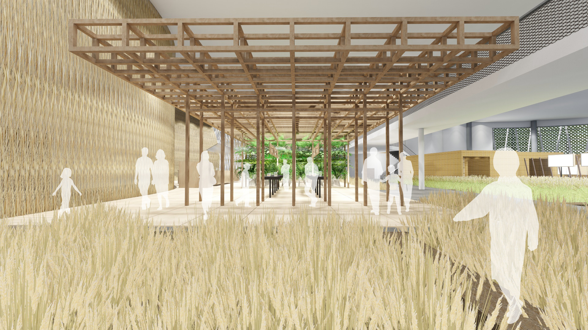 樂農館則將打造為述說台灣農業故事的場域,預計營造農村場景,將有田園、草木、數間錯落的小屋等,規劃邀請農業達人現身說法,與參觀者互動,分享自身經歷;或透過互動式多媒體裝置,以影音展示作物生長歷程及農民故事。