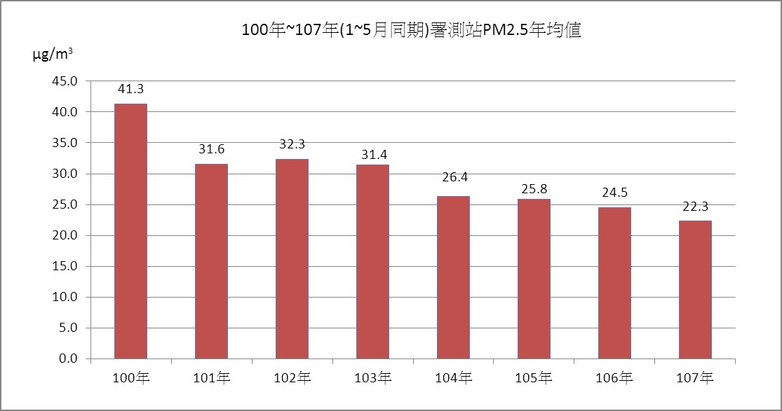 另外,台中今年1至5月PM2.5平均值每立方米22.3微克,相較去年同期24.5微克改善2.2微克,則為8年來最低。延用較嚴格舊標準的紫爆日數方面,今年1至5月累計共10天,較去年同期17天減少7天,減幅高達4成。