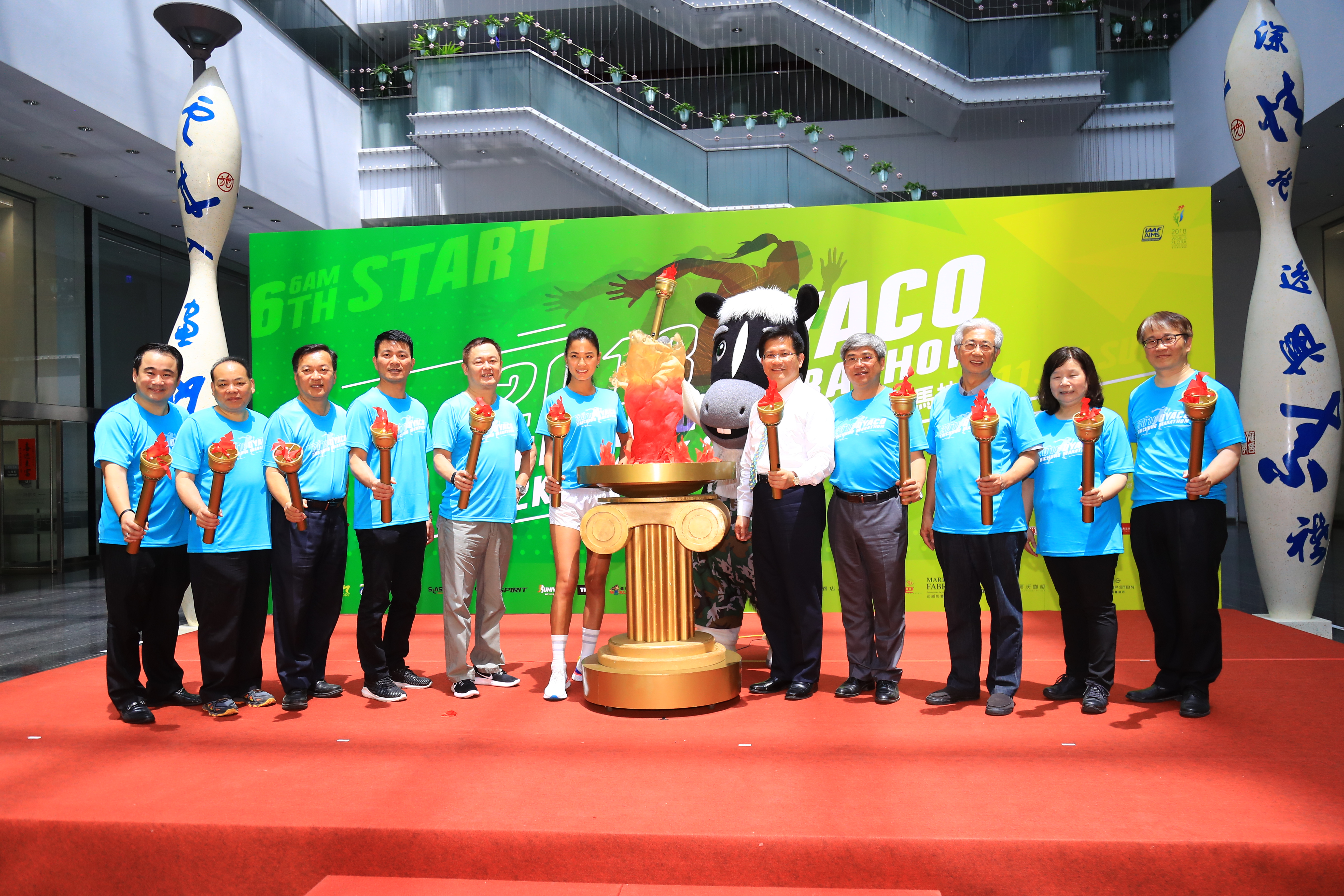 眾人與活動大使伊林名模王麗雅、花博吉祥物歐米馬共同進行啟動儀式,宣布報名開跑。立法委員張廖萬堅、市議員張耀中也派服務處代表到場致意,氣氛熱鬧。