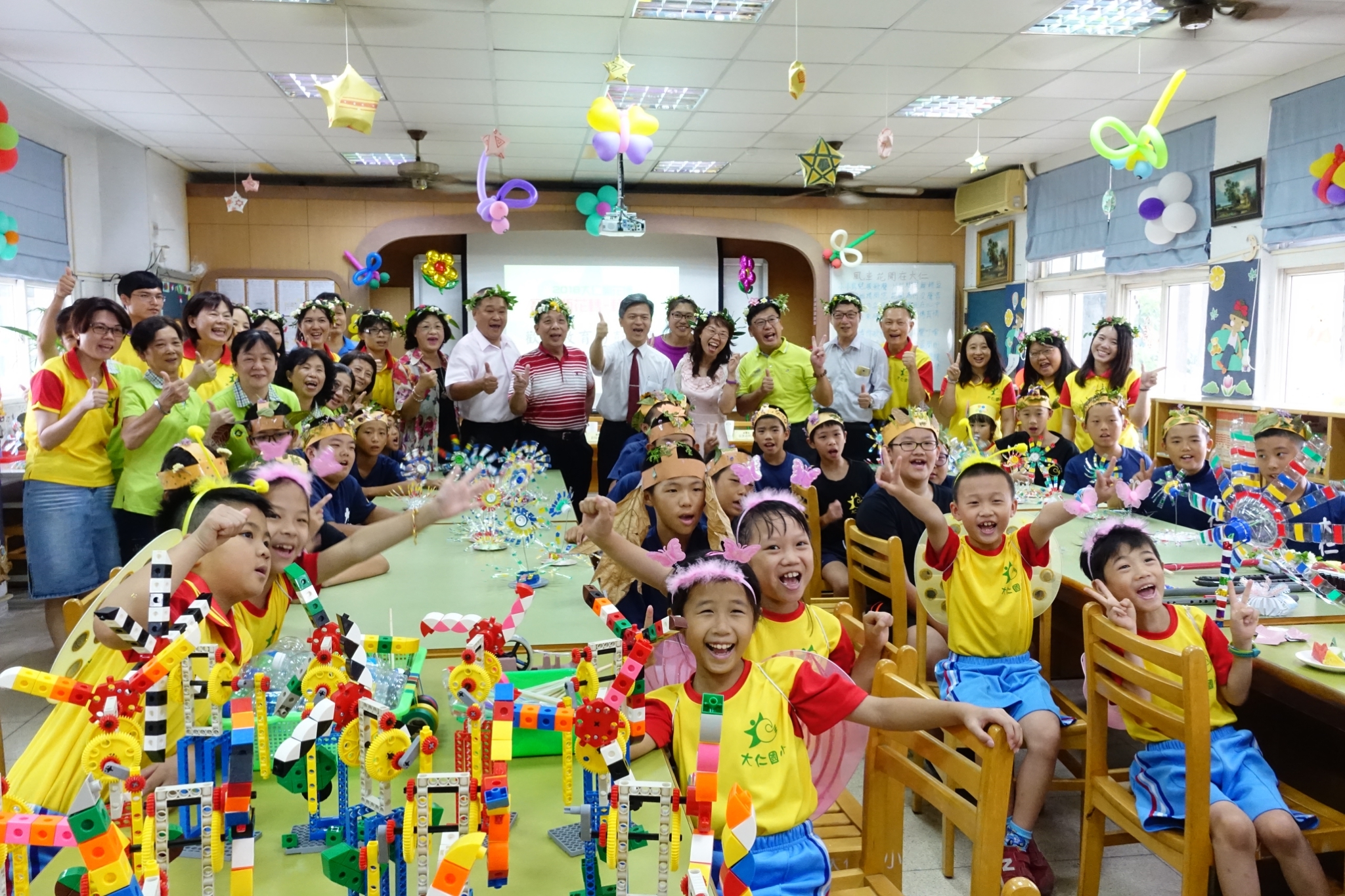 台中市政府教育局積極推廣美學扎根,響應今年台中花博將登場,西屯區大仁國小結合花博元素與校本課程「小小科學家」,帶領學童製作環保又美觀的寶特瓶花卉,學生從動手做中學習科學原理,成果並成為校內裝置藝術。今(7)日舉辦「寶特瓶花轉轉轉」發表活動,市府教育局長彭富源也出席共襄盛舉。
