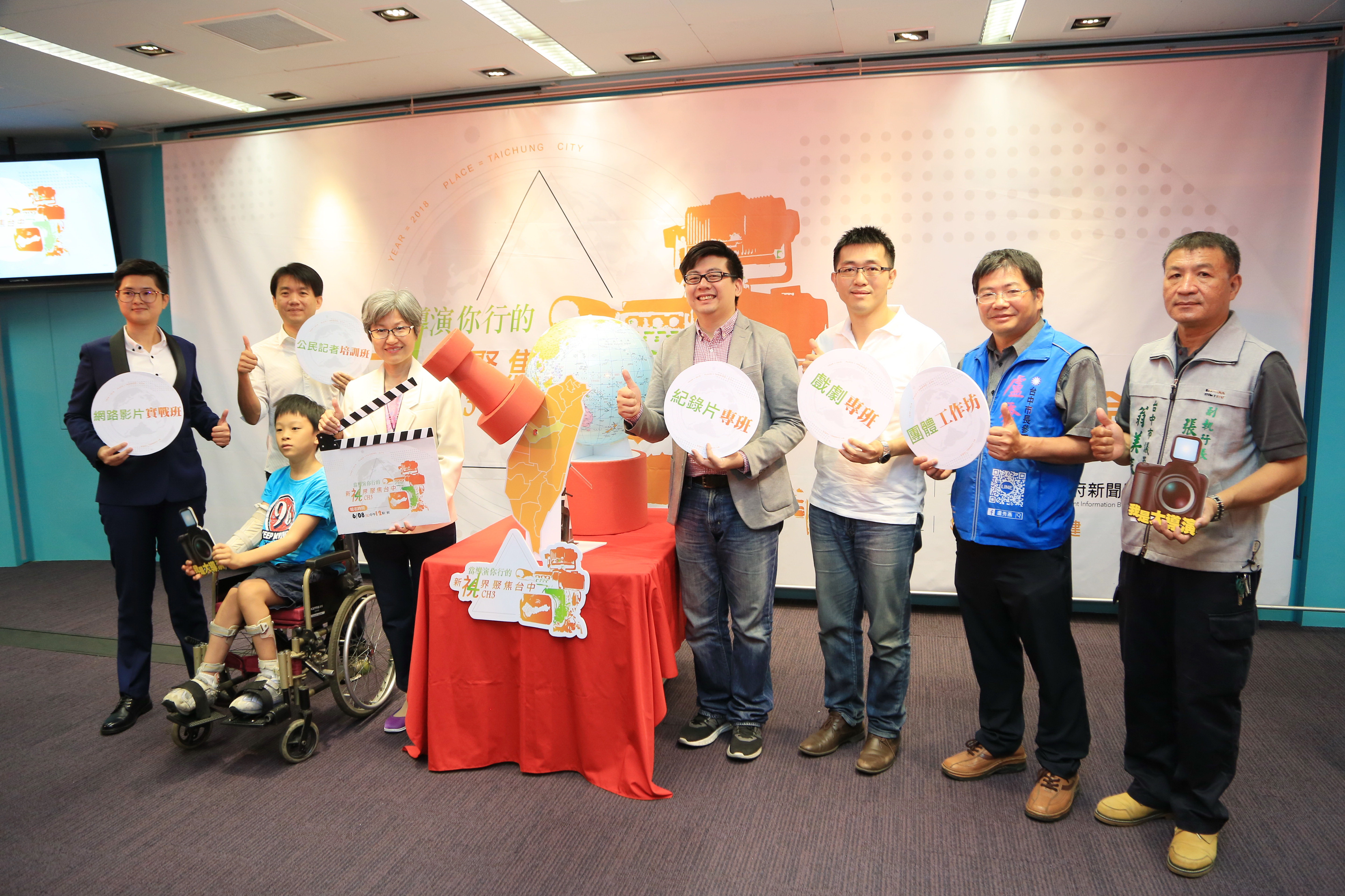 市府新聞局今日舉辦「當導演你行的 新視界聚焦台中」宣傳記者會,世大運歌曲共同創作者林易以一首悠揚動人的「Enjoy Moment(享受當下)」創作歌曲為活動揭開序幕,包括新聞局副局長吳超男、活動顧問洪馬克導演、講師陳正勳導演、林煥文導演、網路紅人6YingWei快樂姊(劉瑩惟),以及立法委員盧秀燕、市議員翁美春服務處代表均到場力挺,一同宣告活動開跑。