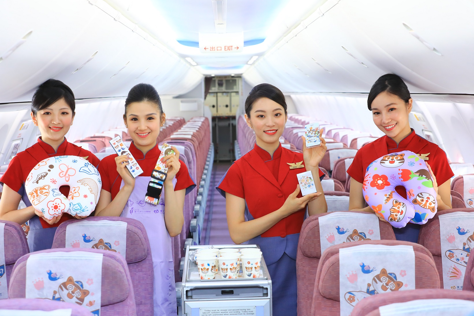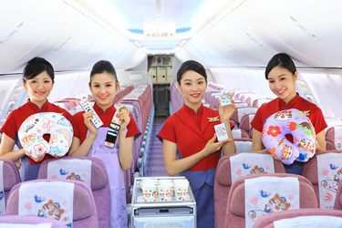 林市長明日將率團搭乘首航機,直飛東京宣傳花博,所搭乘的飛機設有花博機艙,機上空服員將穿上印有花卉圖樣的圍裙為旅客服務,機艙內包括枕頭、紙杯、餐墊紙等都印有花博吉祥物石虎或歐米馬的圖案,可愛吸睛。