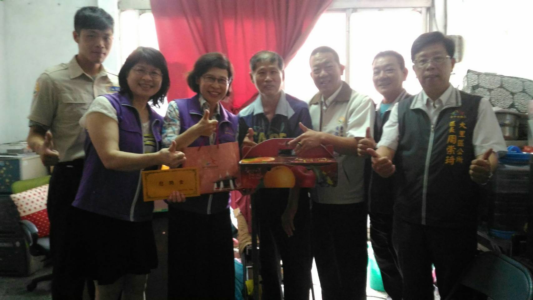 昨(12)日,市府民政局副局長徐仙卿代表市長林佳龍、民政局長游湧志,與大里區長周崇琦、祥興里長黃春海及屯區編管中心秘書洪朱泰一同前往大里區因公傷病退伍人員吳先生及張先生家中上慰問訪視。