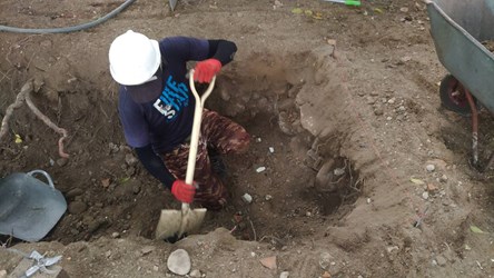 建設局今日試挖結果顯示,距離地面50公分處即有大面積的柏油層與許多混凝土塊與磚塊,將透過樹木專家會議討論,另行提出茄苳公棲地的分年與分階段廢棄物清除與修復計畫,逐年改善棲地環境,以利根系發展。