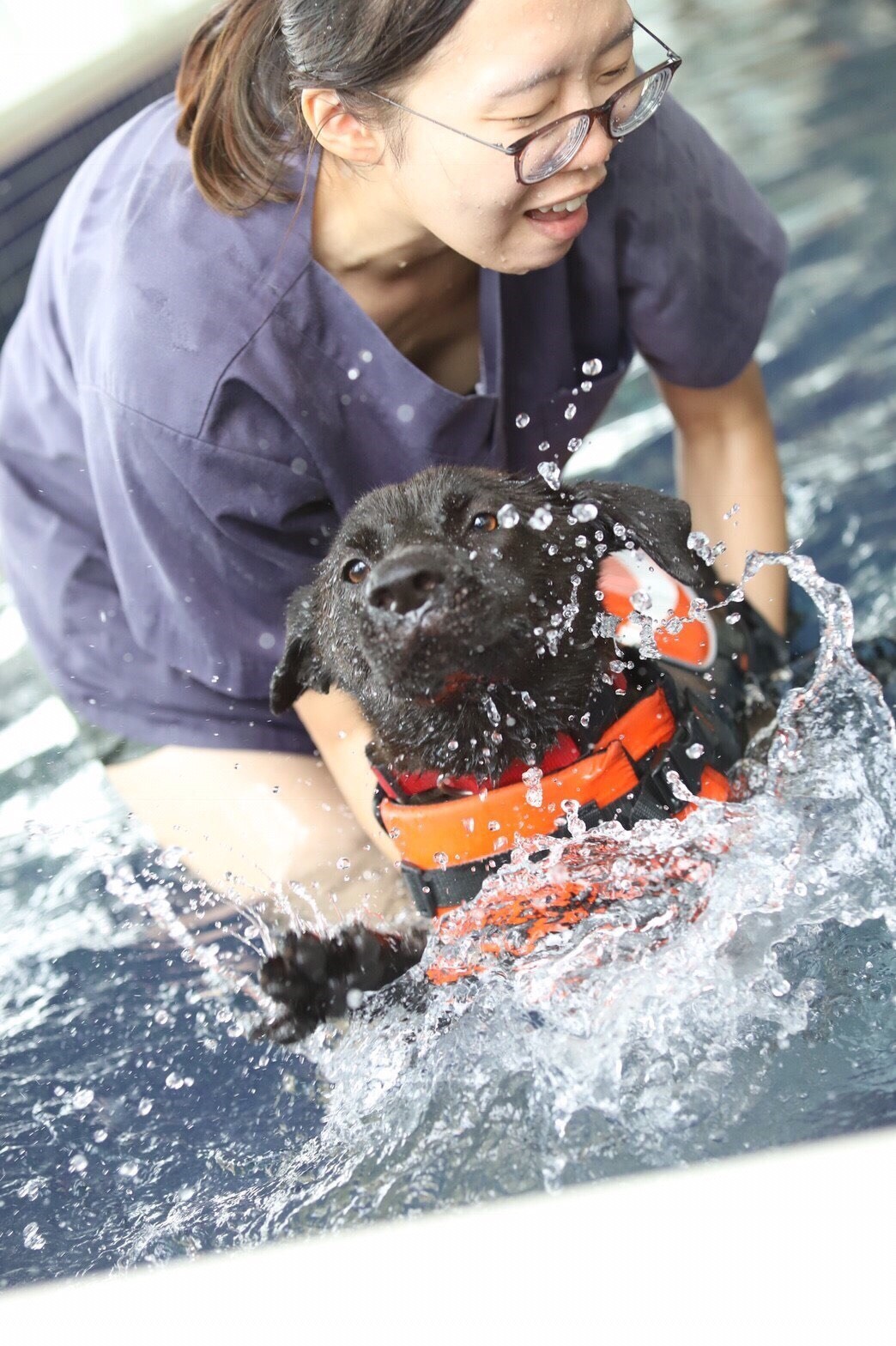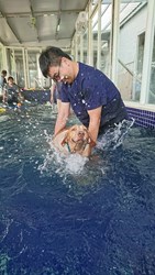 訓犬員利用水的浮力與玩具設計活動,協助狗狗強化肌肉與提升肌耐力,同時也能減少對關節的負擔,維持毛小孩的標準身材,不少狗狗從一開始適應水性,到後來在訓犬員的協助下,自在地在水中活動,看到他們開心的表達,可說是成功達成任務。