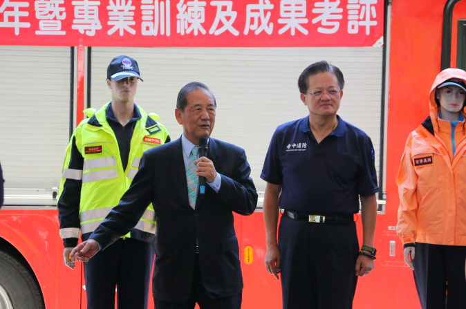 林副市長表示,為維護台中市公共安全,消防人員扮演重要角色,林市長上任後全力支持各項運作,例如第二救災救護大隊內增建梨山偏遠地區消防廳舍、增設谷關消防分隊、運用和平專案汰換救護車及警備車輛、購置禦寒應勤服裝及救助頭盔等,期勉義消人員透過成果考評持續精進,從事訓練及執行救災時,也要做好自我保護。