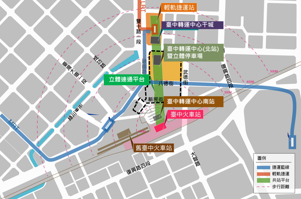 此興建計畫位於台中車站東北隅,總工程經費共12億元,中央依自償性補助停車場工程經費3.96億元,加上市府自籌約8.04億元,將興建地上轉運中心及地下三層停車場,提供690席汽車停車位及306席機車位,可有效紓解轉運接駁及周邊民眾停車需求。