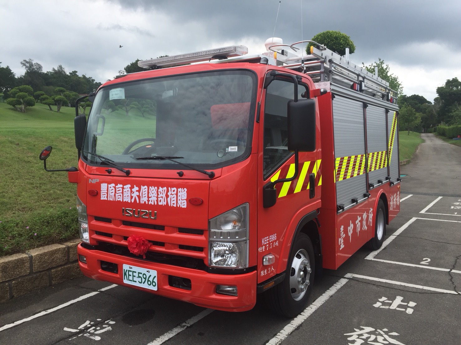 消防局表示,豐原高爾夫俱樂部座落於豐原區公老坪,創立於1962 年,以推展全民運動,增進國民健康為宗旨,理事長邱俊光平時秉持「取之於社會、用之於社會」的理念,積極參與公益活動,回饋大眾,因感念消防同仁救災辛勞,深覺消防救災車輛重要性,在俱樂部全體會員熱烈支持下,捐贈市府水箱消防車,以具體行動實踐社會責任。(6/23*18)*消防局